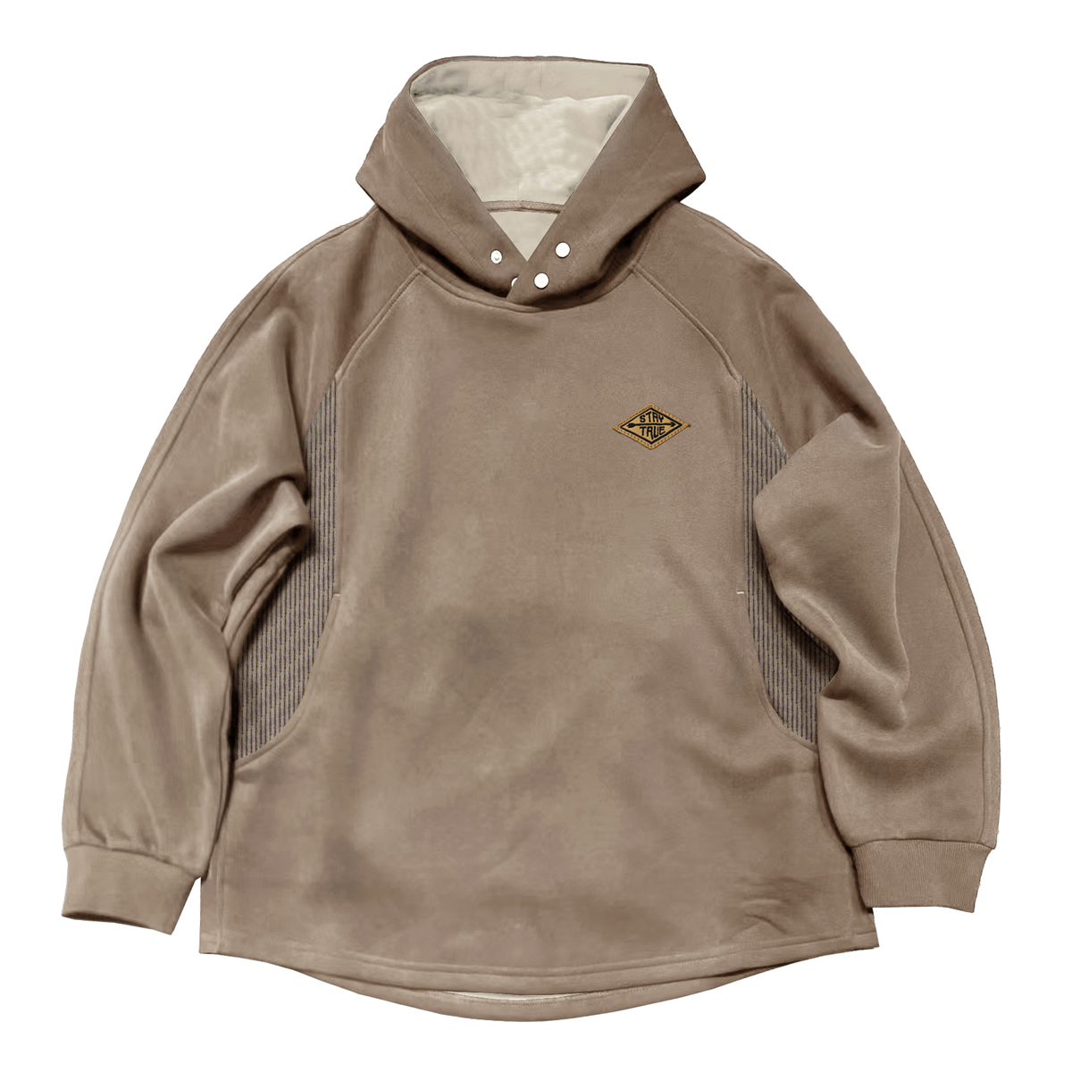 【予約】「STAY TRUE」刺繍ワッペン サイドリブ切替フード付きスウェット