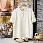 ターコイズ風ボタン付き ワッフルヘンリーTシャツ