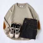 【予約】赤ヒモ付き 肘スエードパッチ入り裏パイルクルーネックスウェット