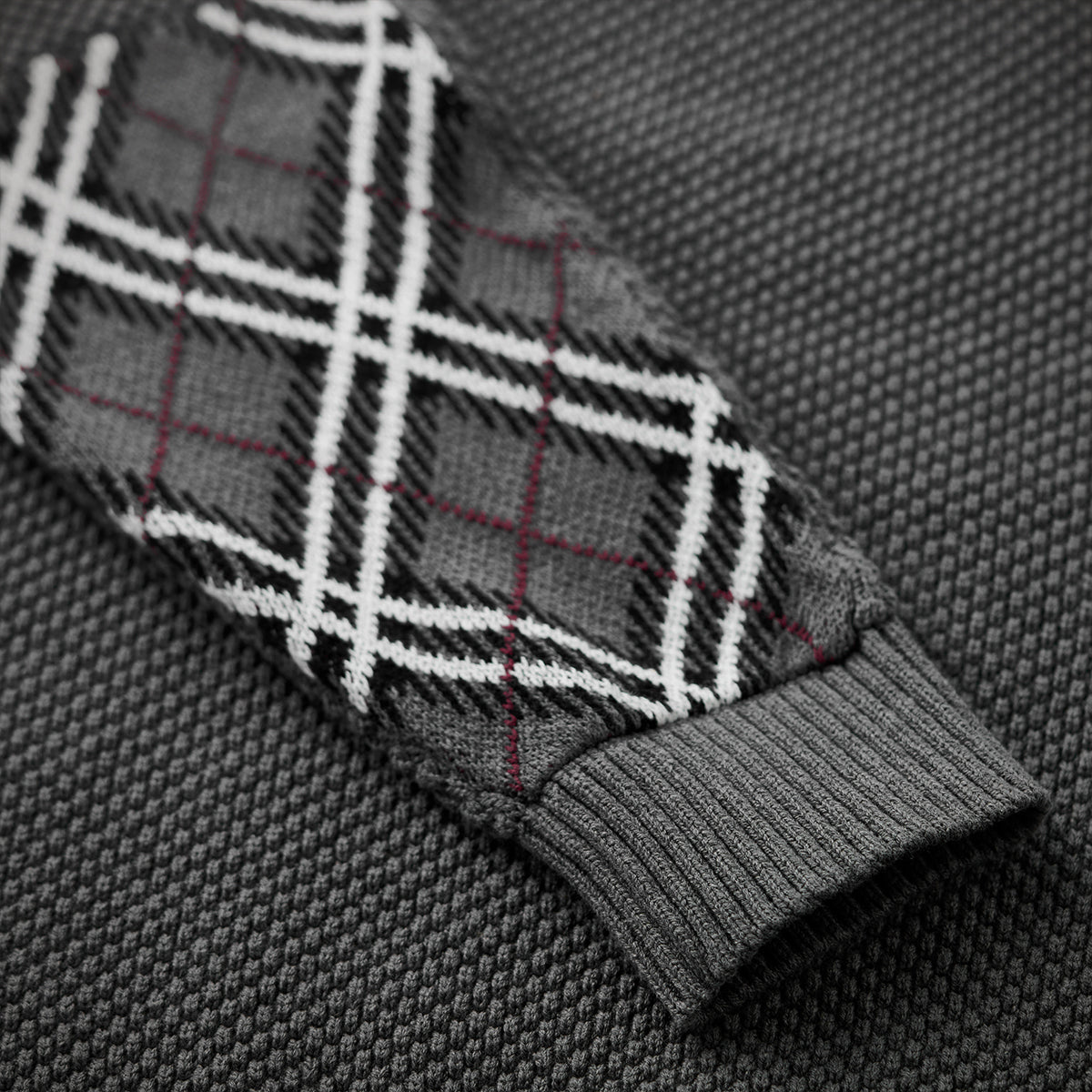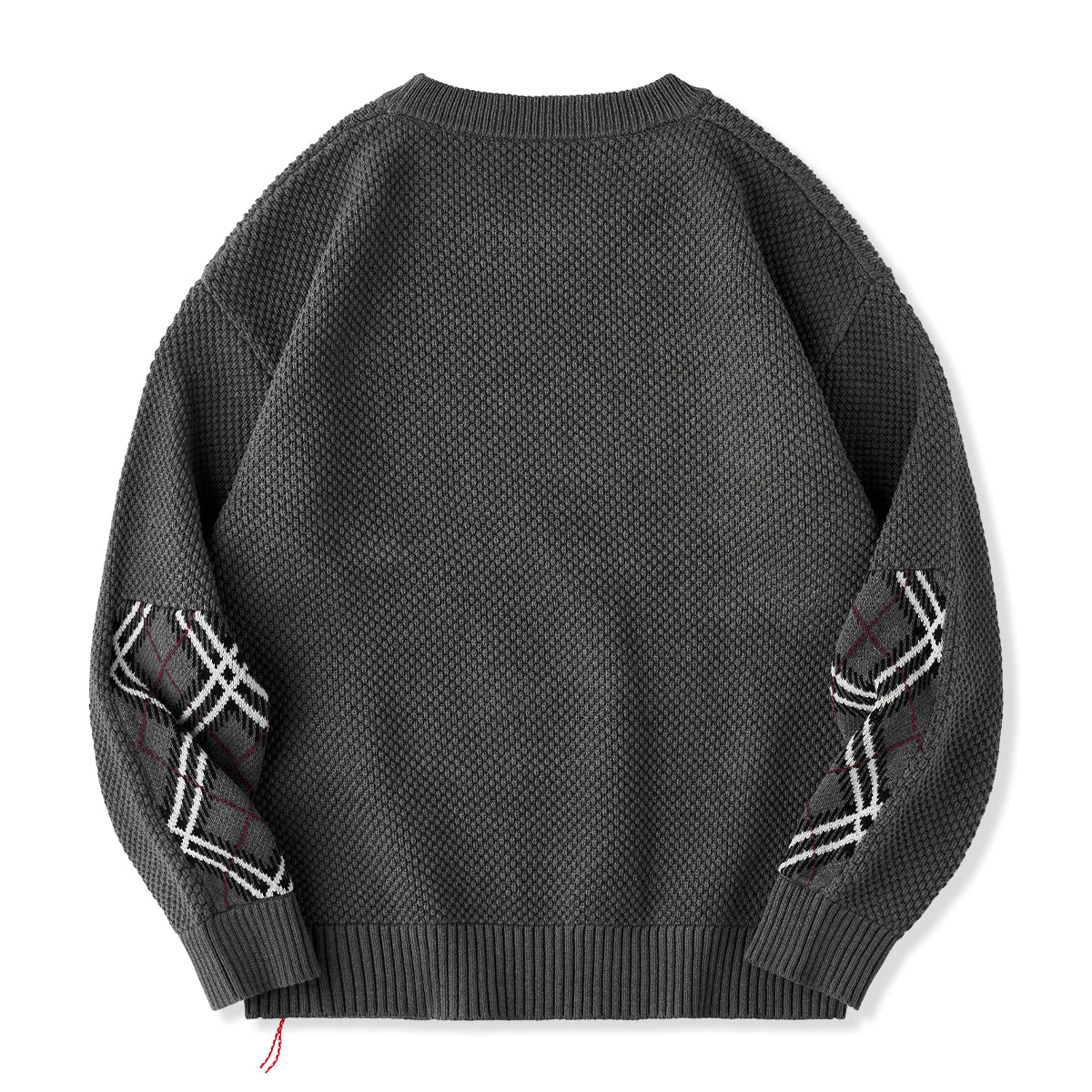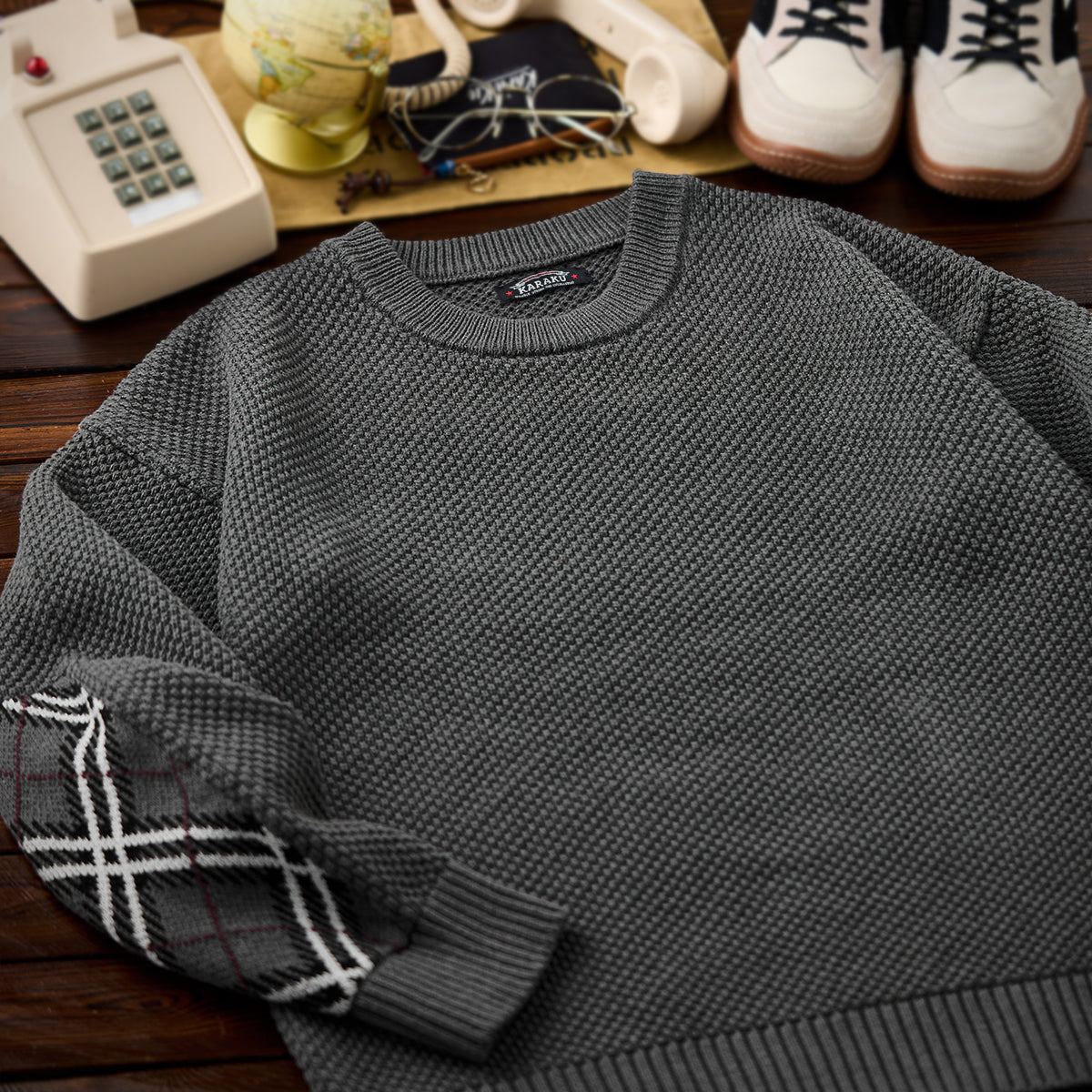 【予約】肘・チェック柄ジャカード織り切替 パイナップル織りニットセーター