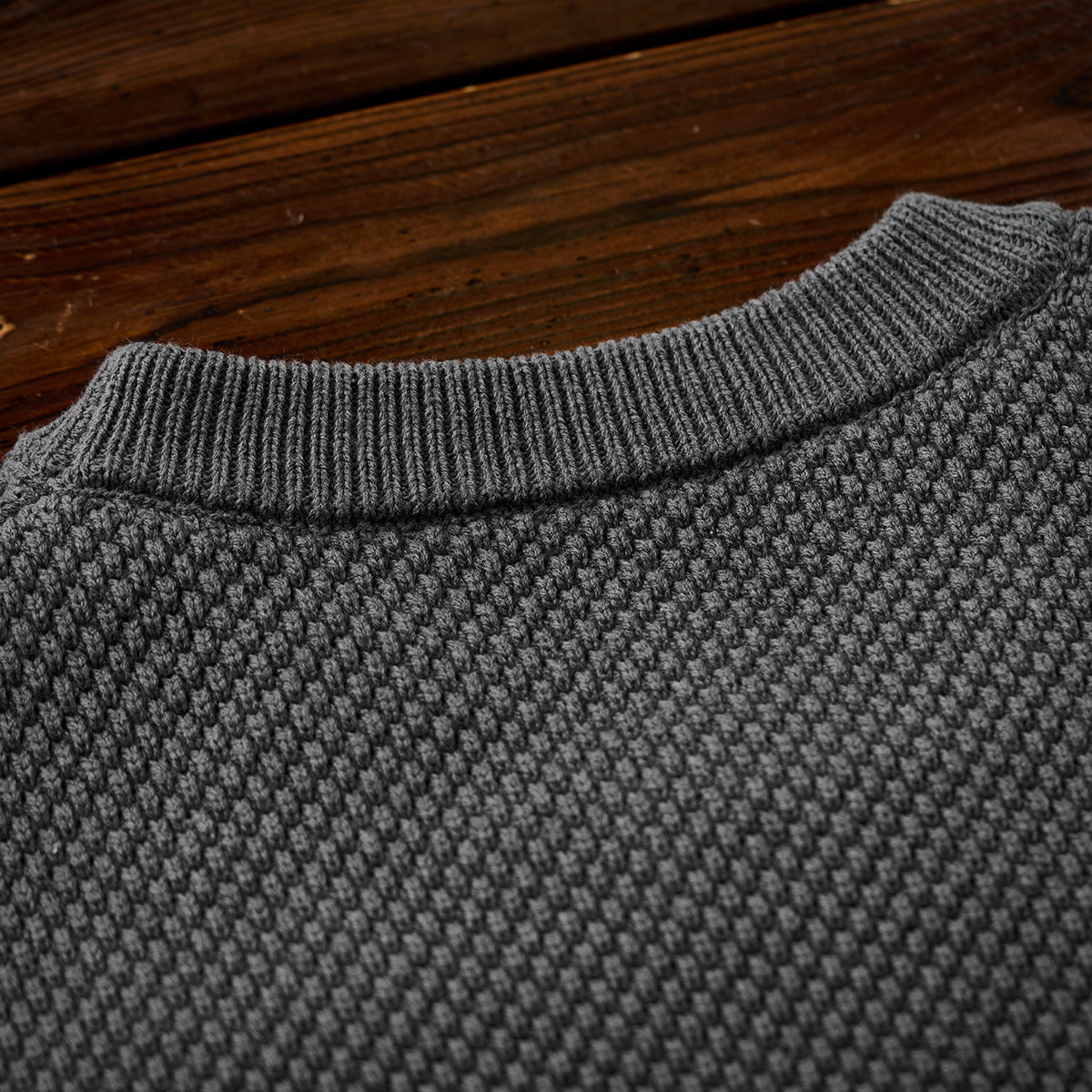 立体感のある“パイナップル織り”をベースに、肘部分へアーガイルチェックのジャカード織りを切り替えた、表情豊かなニットセーター。凹凸のある編み地が生み出す陰影と、クラシックなアーガイル柄のアクセントが絶妙に調和し、1枚でコーデの主役になるデザインです。裾にはデザインのワンポイントとなる“赤い紐”を配置。さりげない遊び心が、スタイリングに個性を添えます。適度な厚みとふんわりした着心地で、秋冬のデイリー使いにぴったり。リラックス感のあるシルエットながら、編み柄の奥行きによって品よくまとめられ、カジュアルからきれいめまで幅広いスタイルにマッチします。
