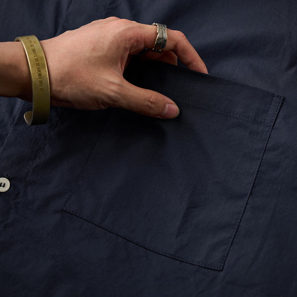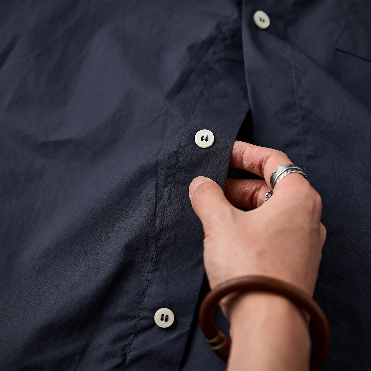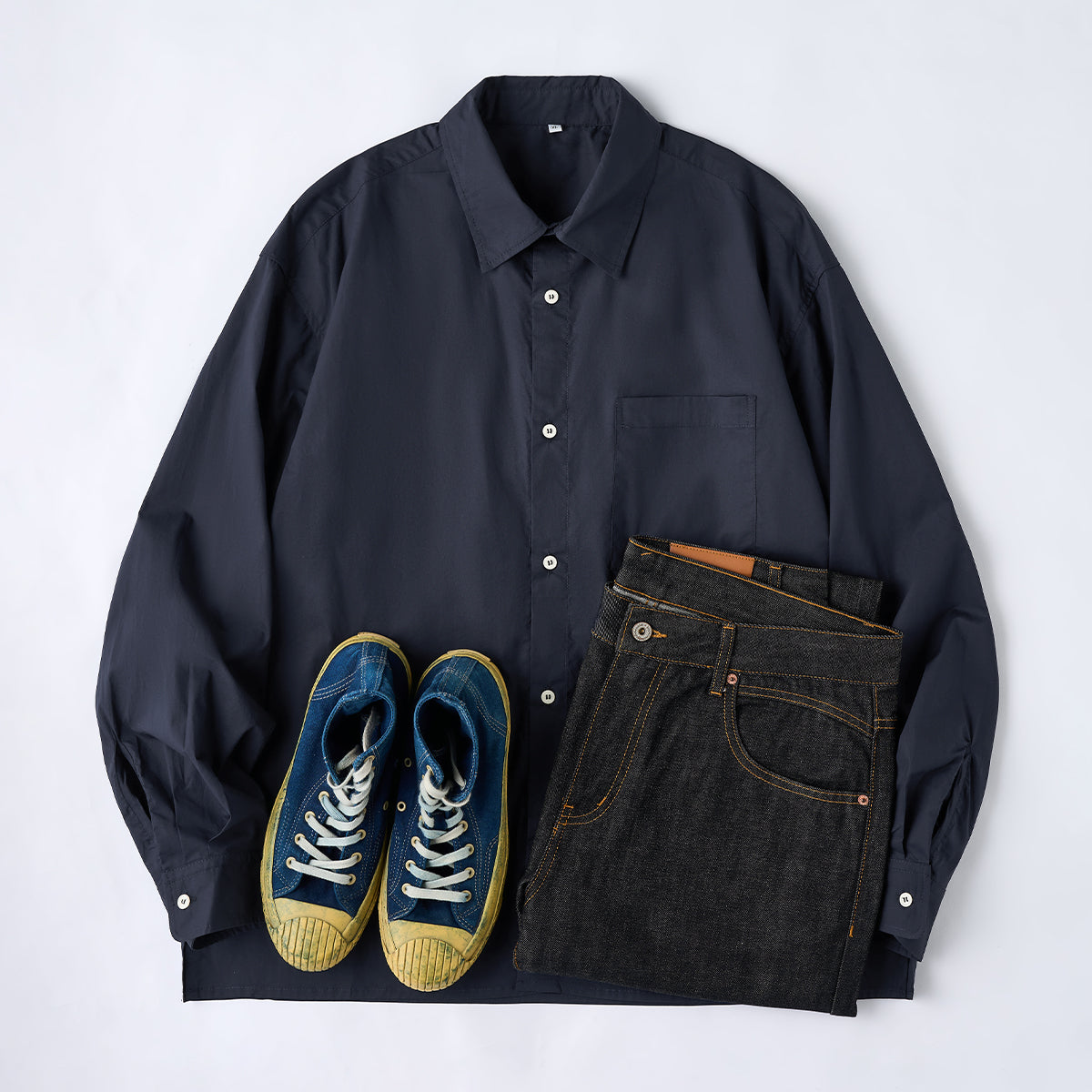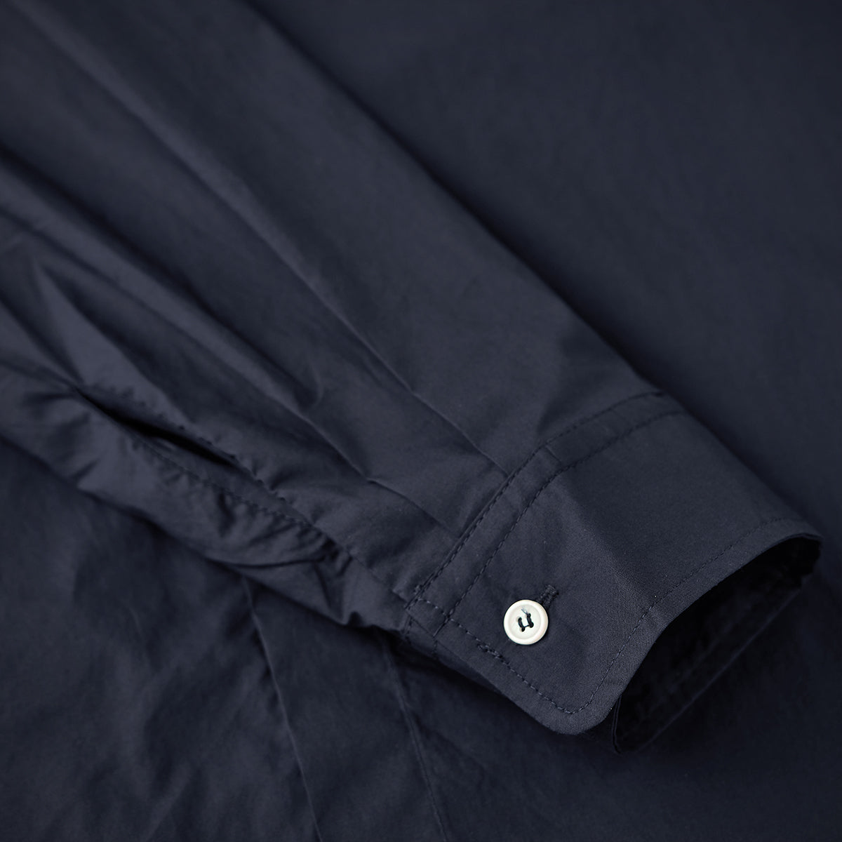素材には肌あたりのやさしいコットン生地を採用。通気性と程よいハリ感を兼ね備え、ロングシーズン快適に着用いただけます。着込むほどに体に馴染み、風合いの変化も楽しめます。