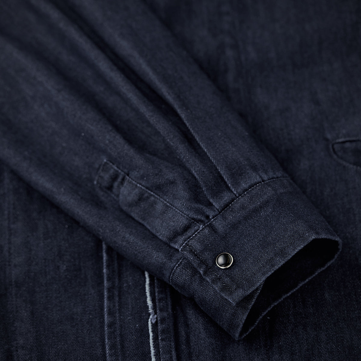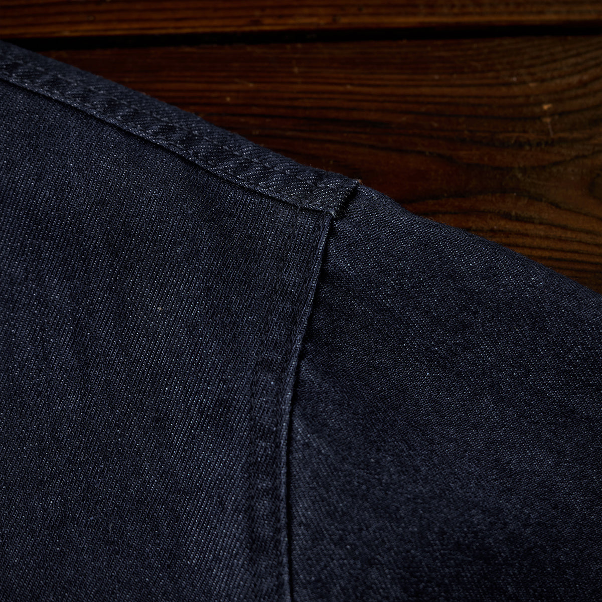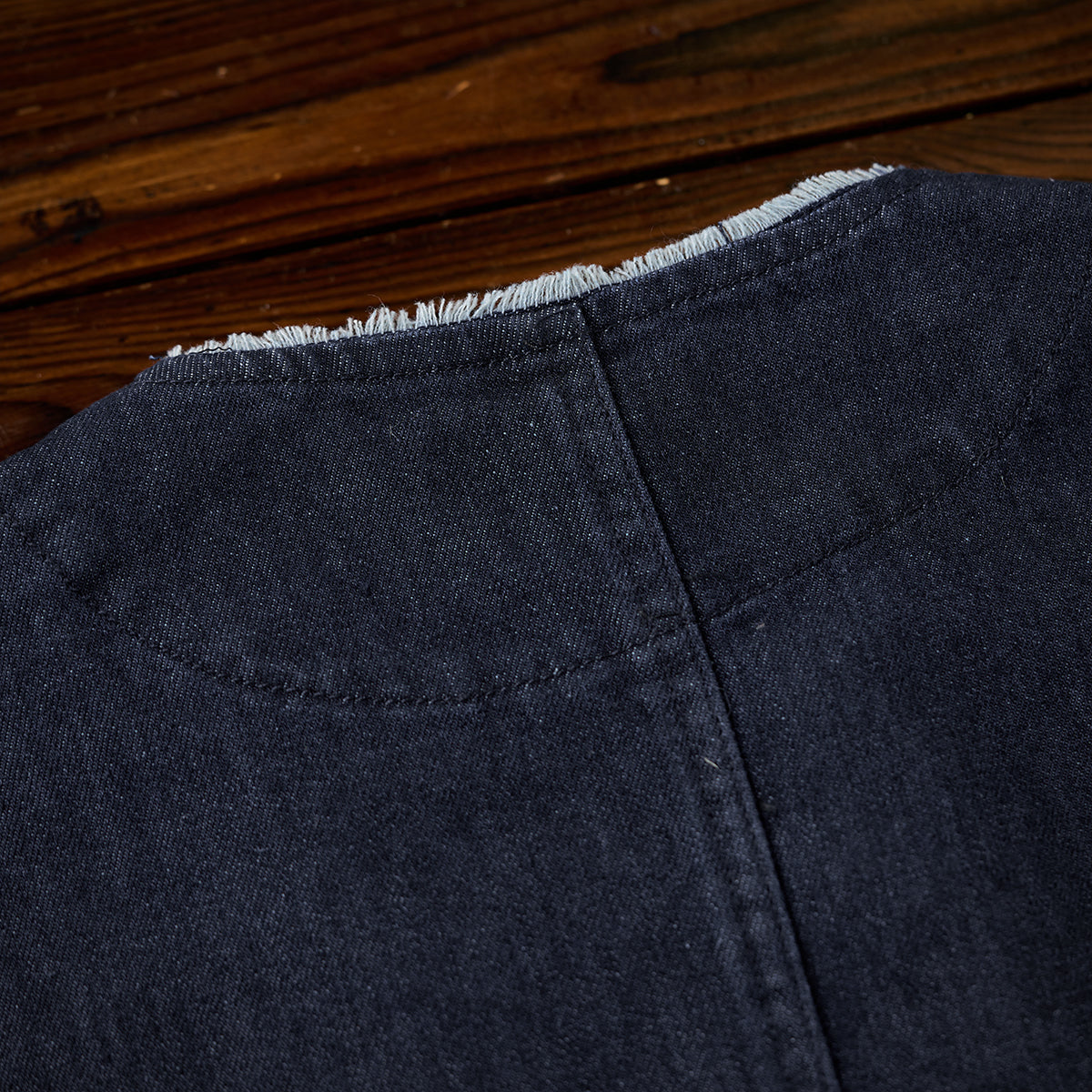 生地にはしっかりとした綿混紡デニム素材を採用し、着込むほどに風合いが増し、自分だけの一着へと育っていく楽しみも。