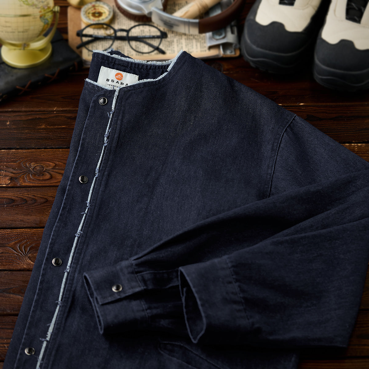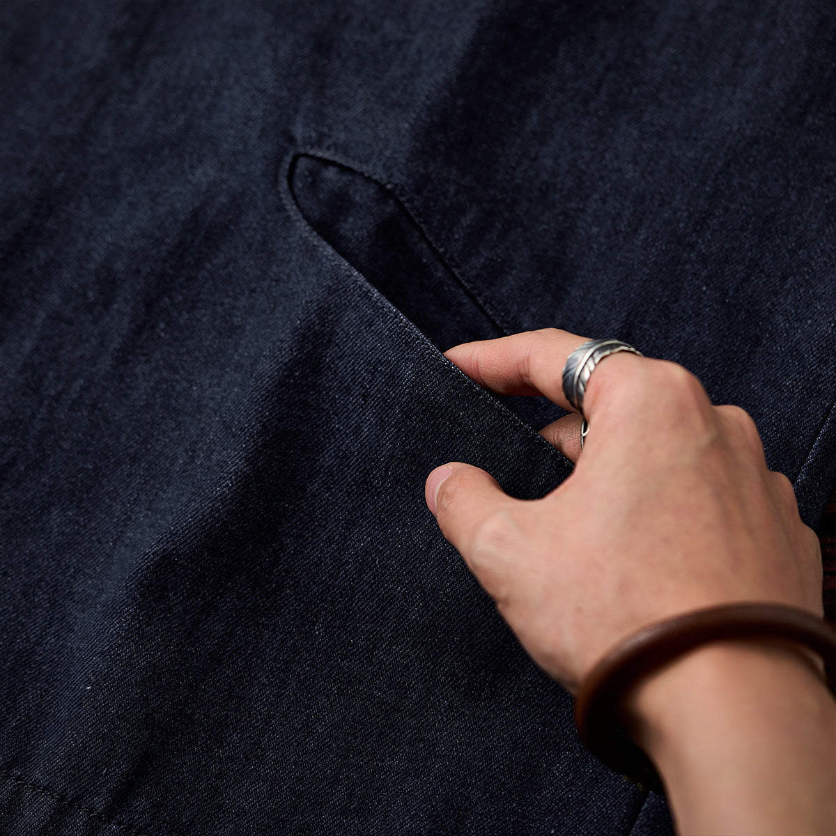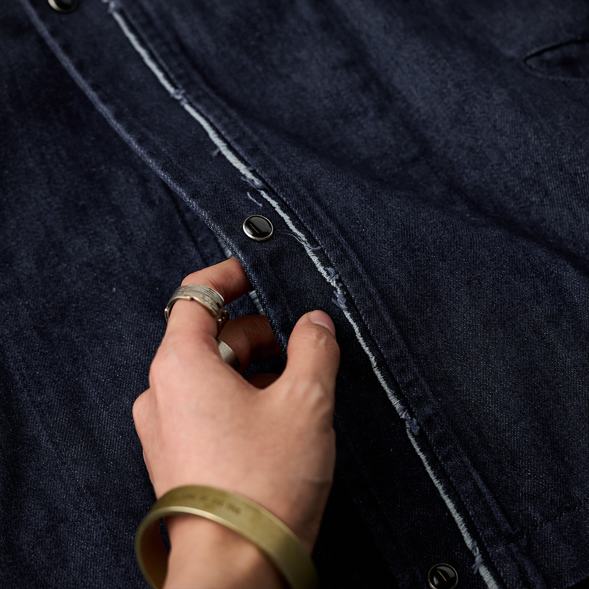 生地にはしっかりとした綿混紡デニム素材を採用し、着込むほどに風合いが増し、自分だけの一着へと育っていく楽しみも。