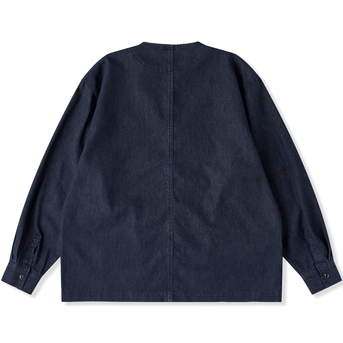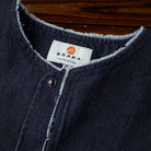 ラフさと洗練を絶妙なバランスで仕上げた、ノーカラーデザインのデニムジャケット。襟元と前立てに施したフリンジ加工が、さりげないアクセントとなり、ヴィンテージライクな雰囲気を演出します。首まわりをすっきりと見せるノーカラー仕様は、シャツやタートルネック、パーカーとのレイヤードにも好相性。フリンジの程よいほつれ感が、着こなしに抜け感とこなれた印象をプラスします。シルエットは程よくゆとりを持たせ、リラックス感がありながらもだらしなく見えない絶妙なバランスに仕上げました。シンプルでありながらディテールで差をつける一着。カジュアルスタイルはもちろん、きれいめコーデの外しとしても活躍する、存在感あるデニムジャケットです。
