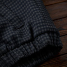 レザー襟切替 チンストラップ付きチェック柄裏キルト中綿ジャケット