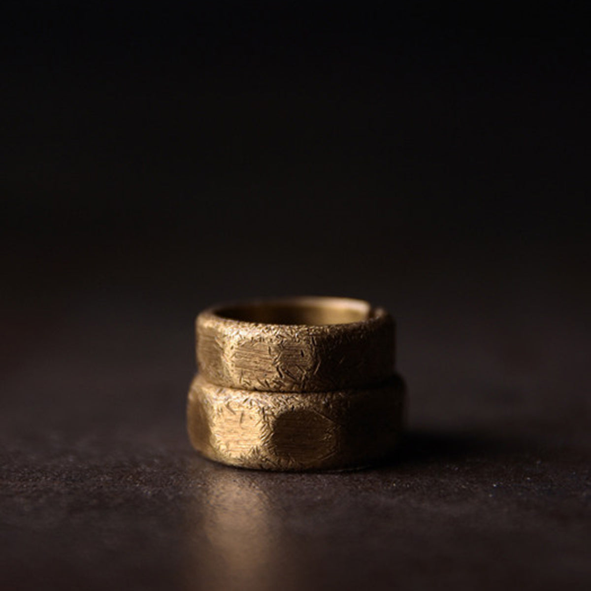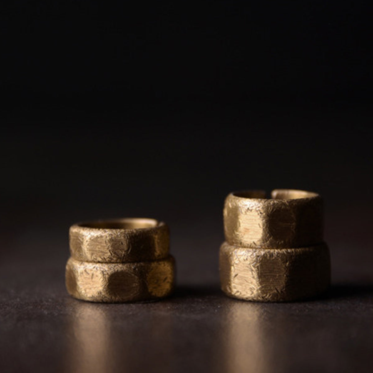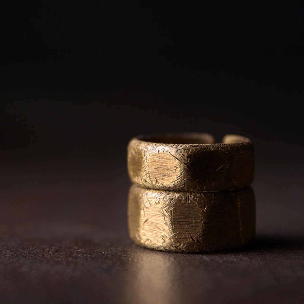 「職人手作り」ランダムテクスチャ真鍮多面カットオープンリング