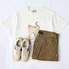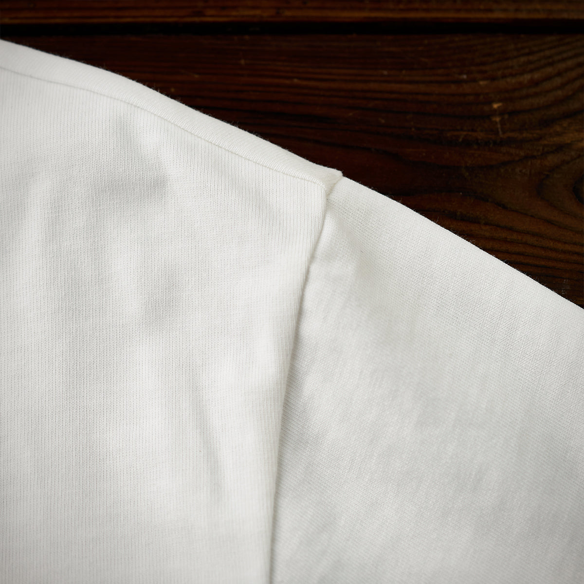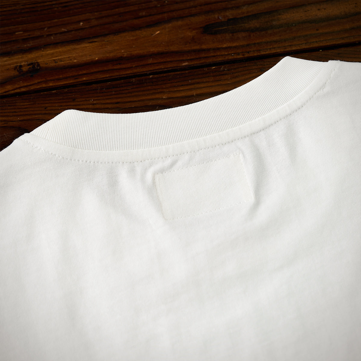しっかりとしたコットン素材を使用しているようです。首元のリブや縫製の仕上げが丁寧で、耐久性や着心地の良さが期待できます。
