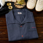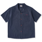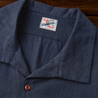 【予約】「KaraKu」ロゴ刺繡 藍染めリネンオープンカラーシャツ