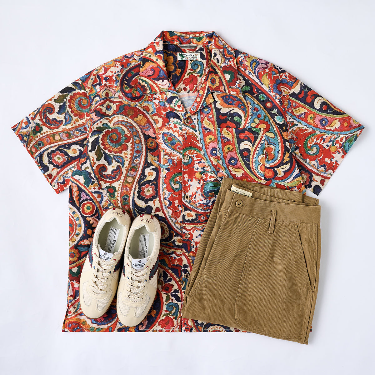 単品として強烈な存在感を持つため、ボトムスや小物は無地やシンプルなデザインでまとめるとバランスがとれます。夏のビーチや、アートや個性を重視するカジュアルなシーンに適しています。