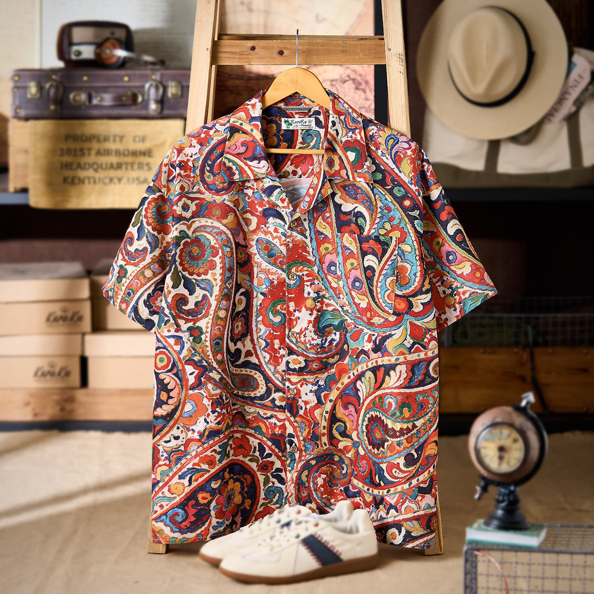 手書き油絵風ペイズリー総柄アロハシャツ