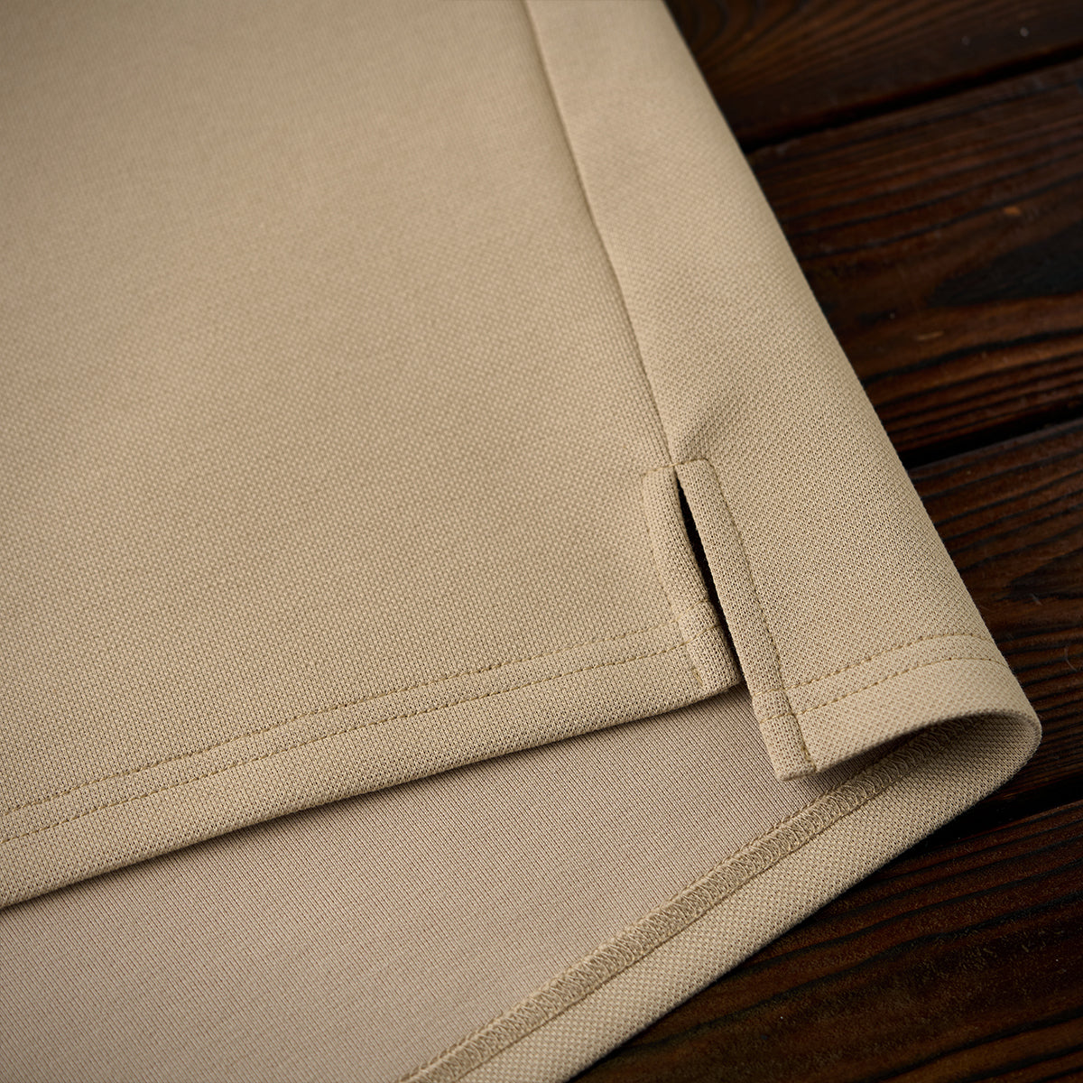 高密度で編まれた生地を使用しており、表面には適度なハリ感があります。これにより、型崩れしにくく、上質感を保ちながら耐久性も備えています。