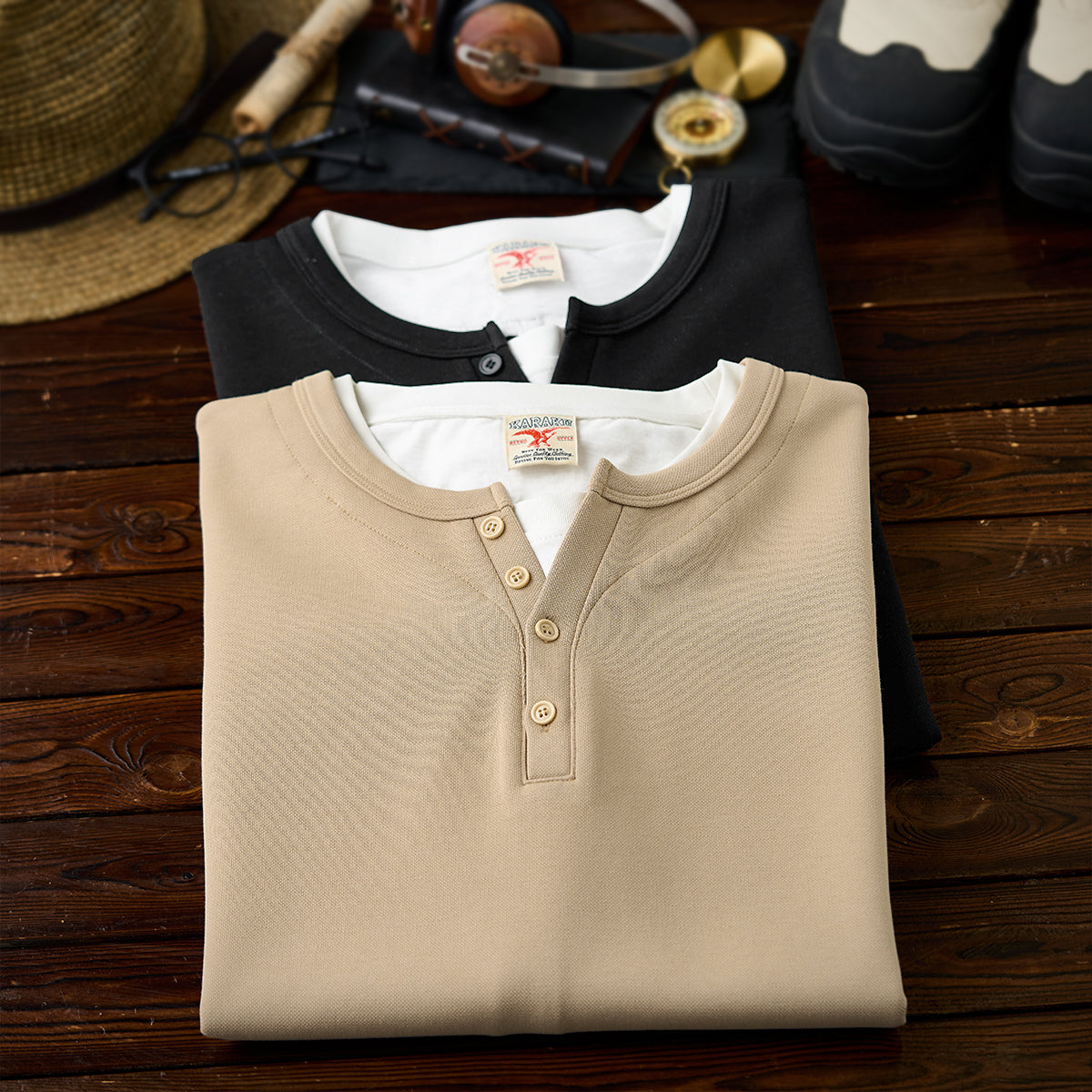 【予約】エアーレイヤーフェイクレイヤードヘンリーネックTシャツ