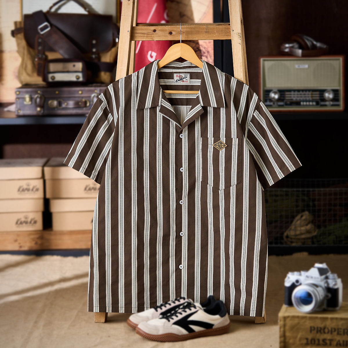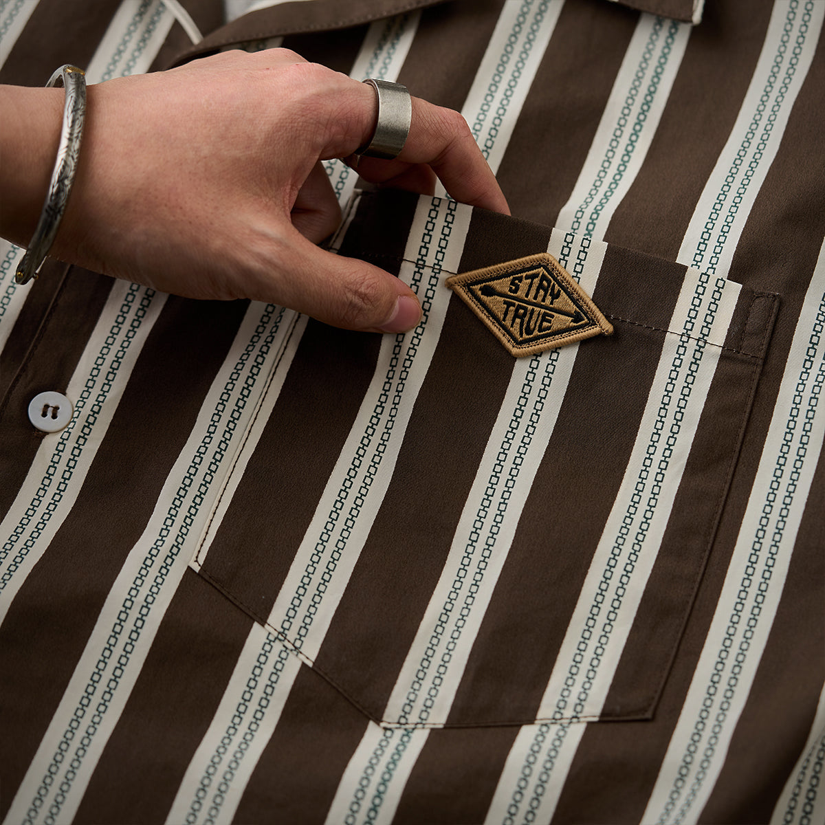 【予約】「STAY TRUE」刺繍ワッペン チェーンストライプキューバシャツ