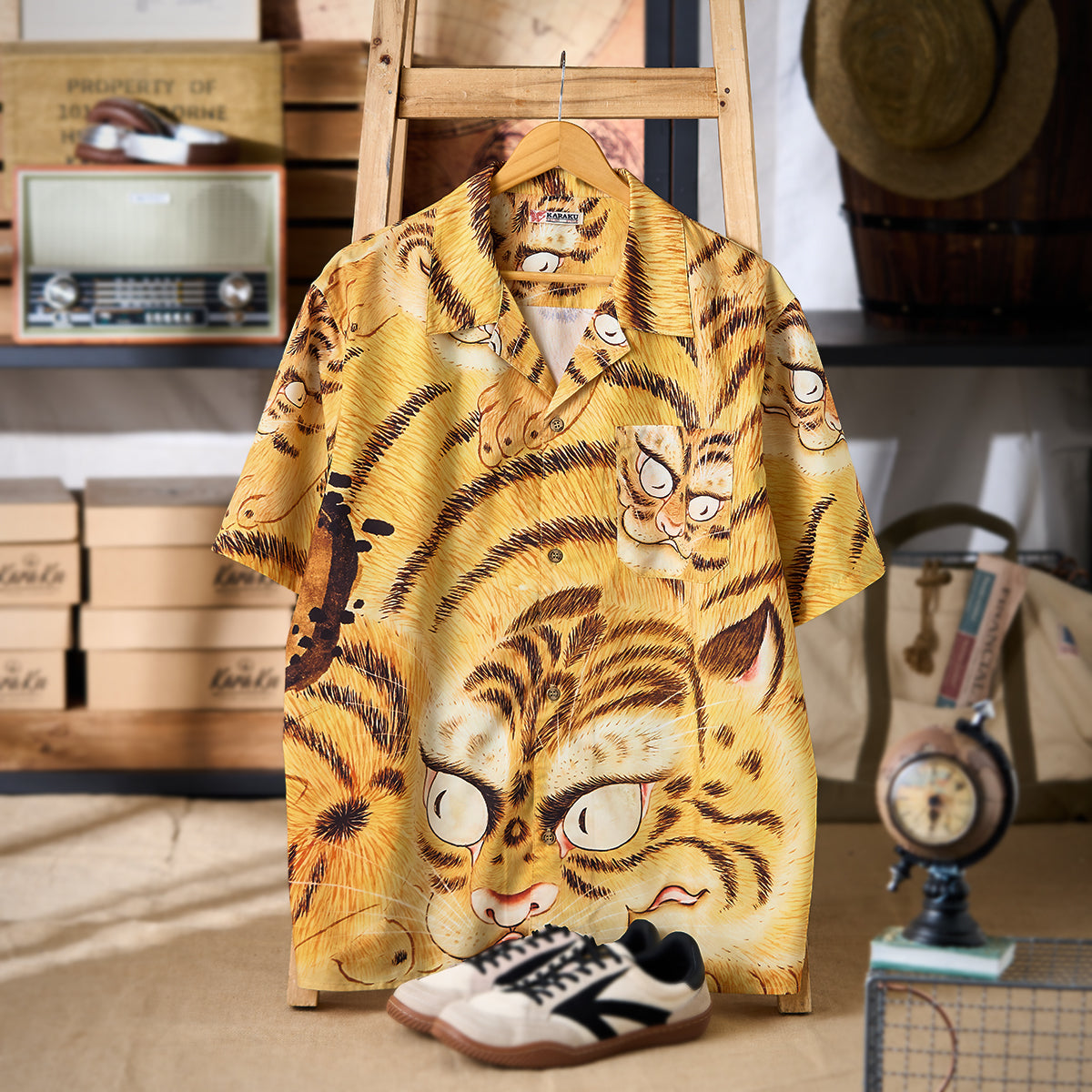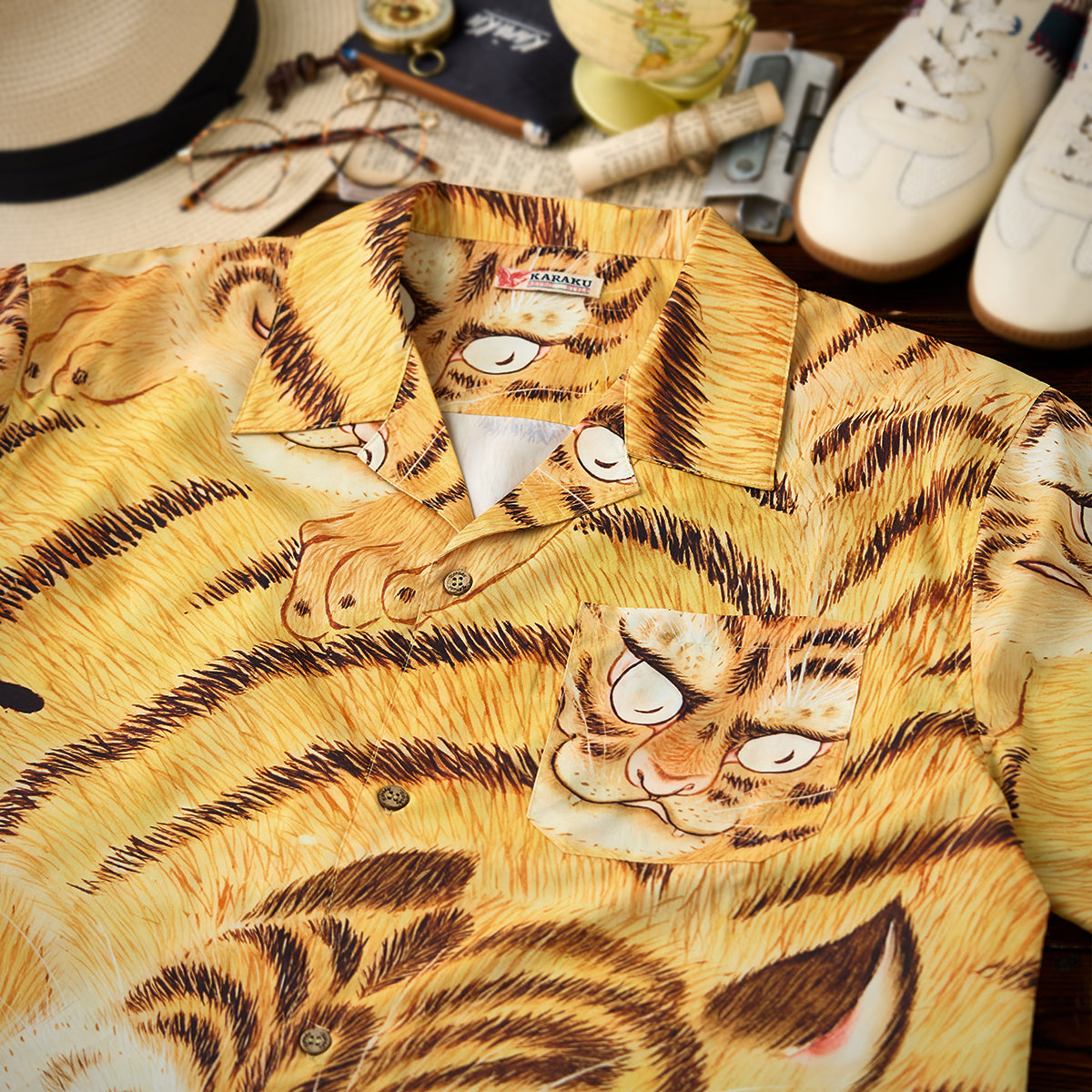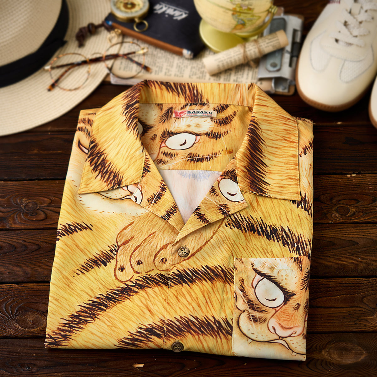 【予約】江戸時代・長崎派「虎図」総柄プリント入りアロハシャツ