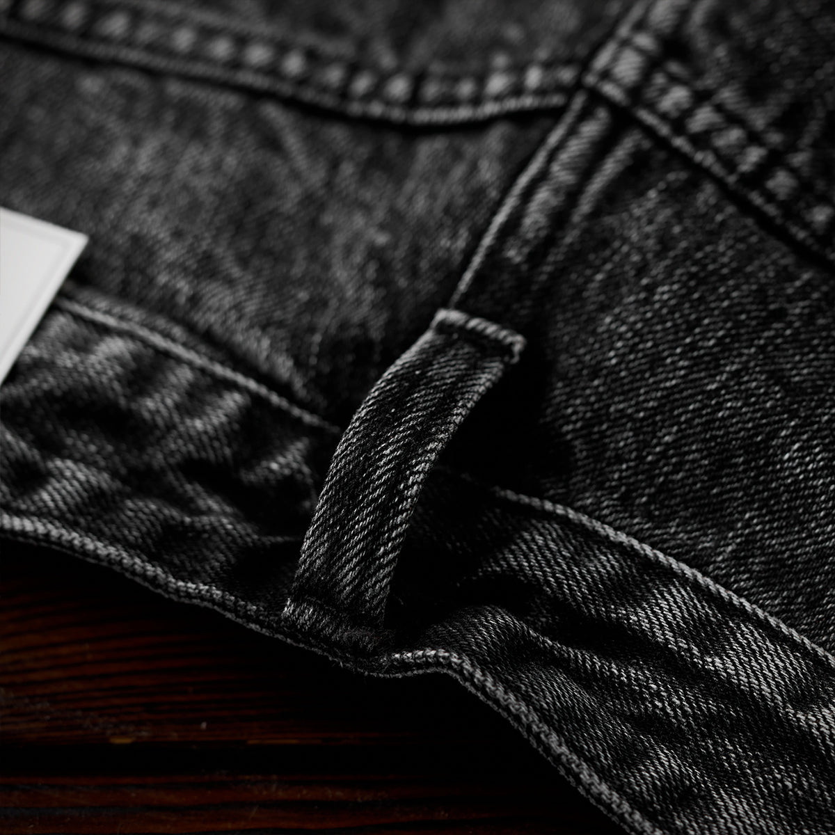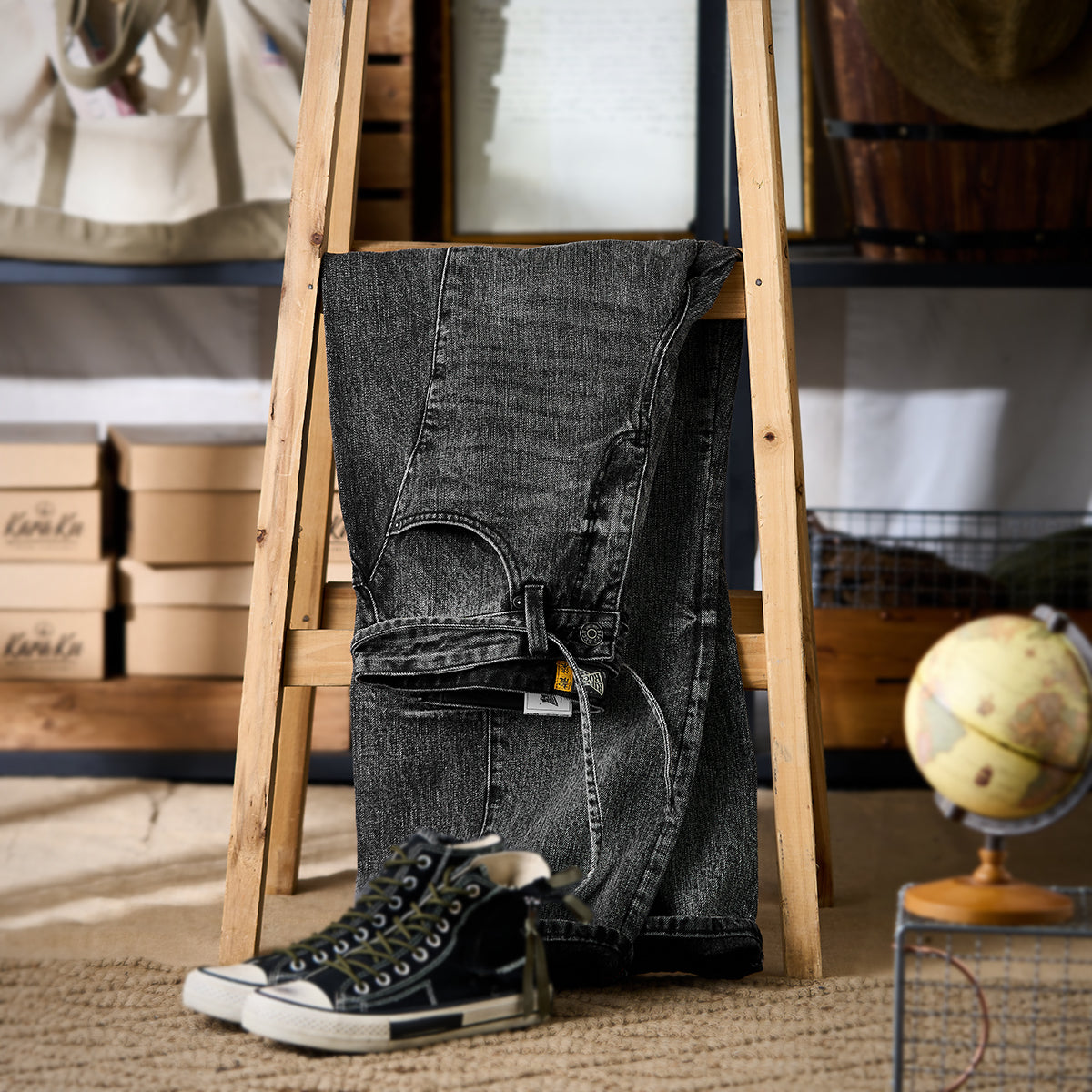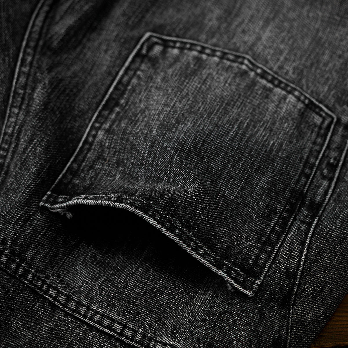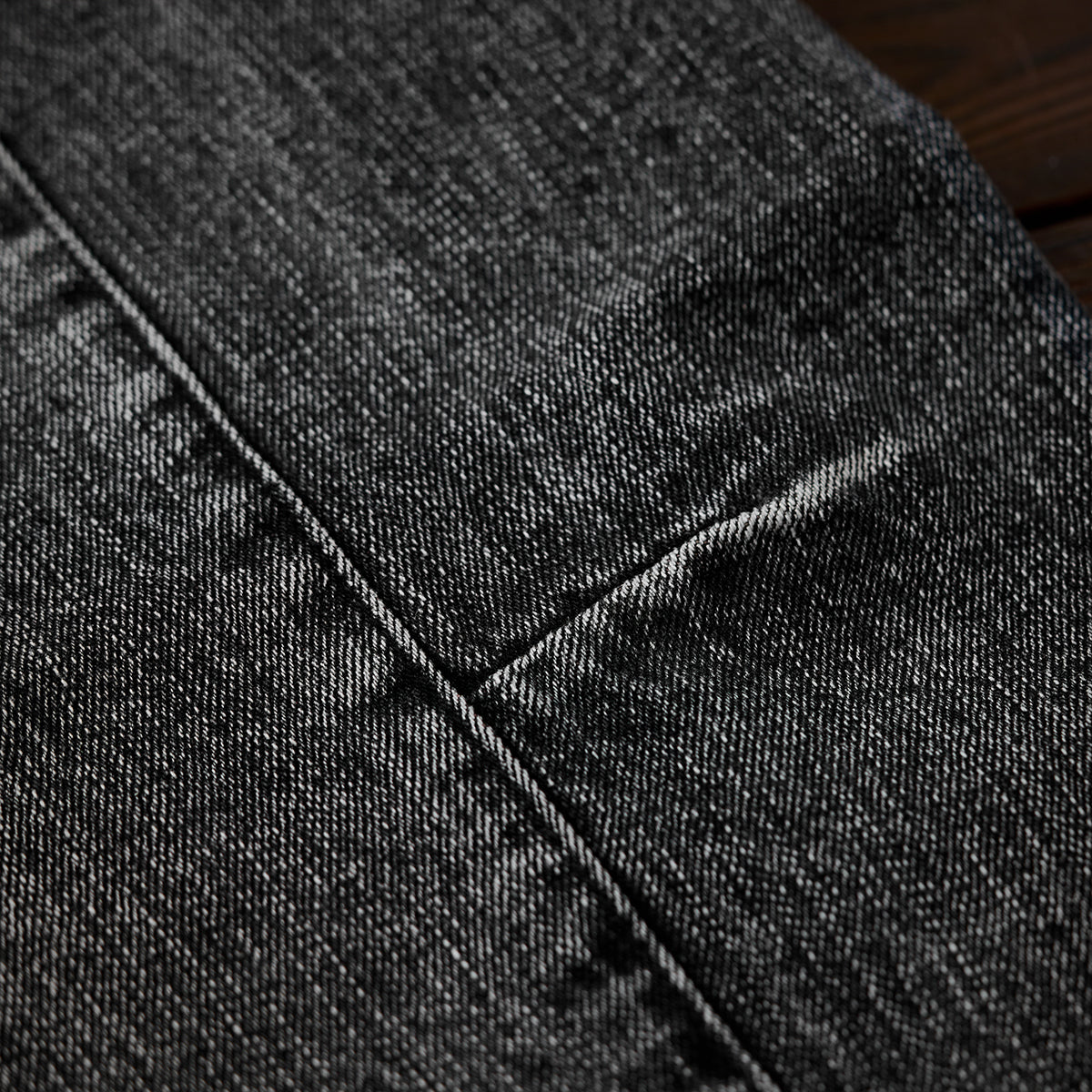コットンデニム素材を使用し、厚すぎず薄すぎない適度なハリがあり、年間を通じて着用可能です。ウォッシュ加工されたものは、使い込んだ風合いがあり、カジュアルでリラックスした印象を与えます。
