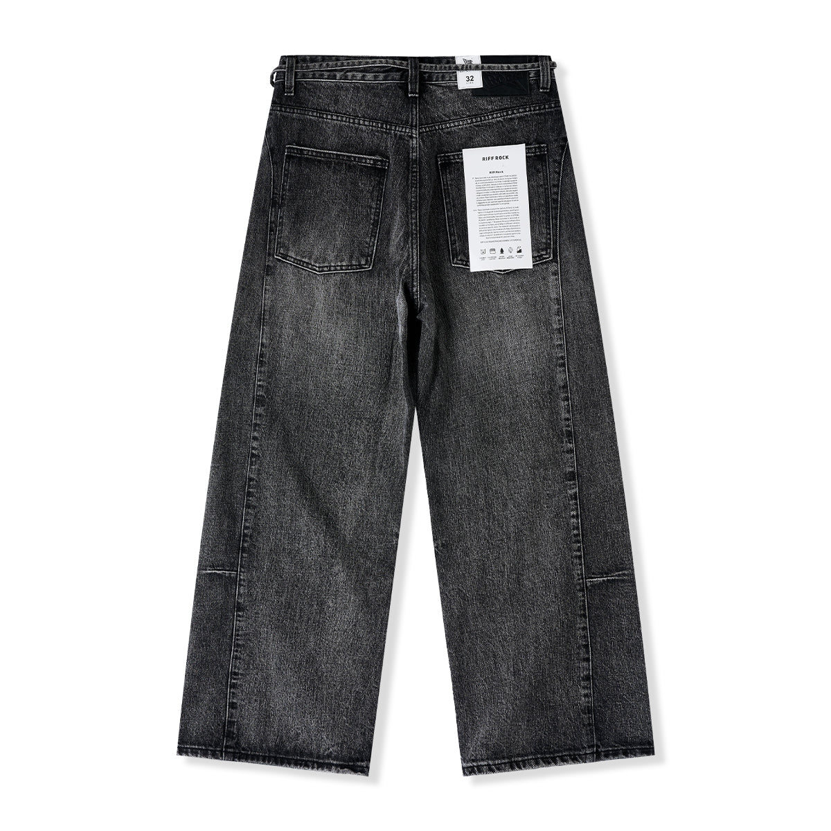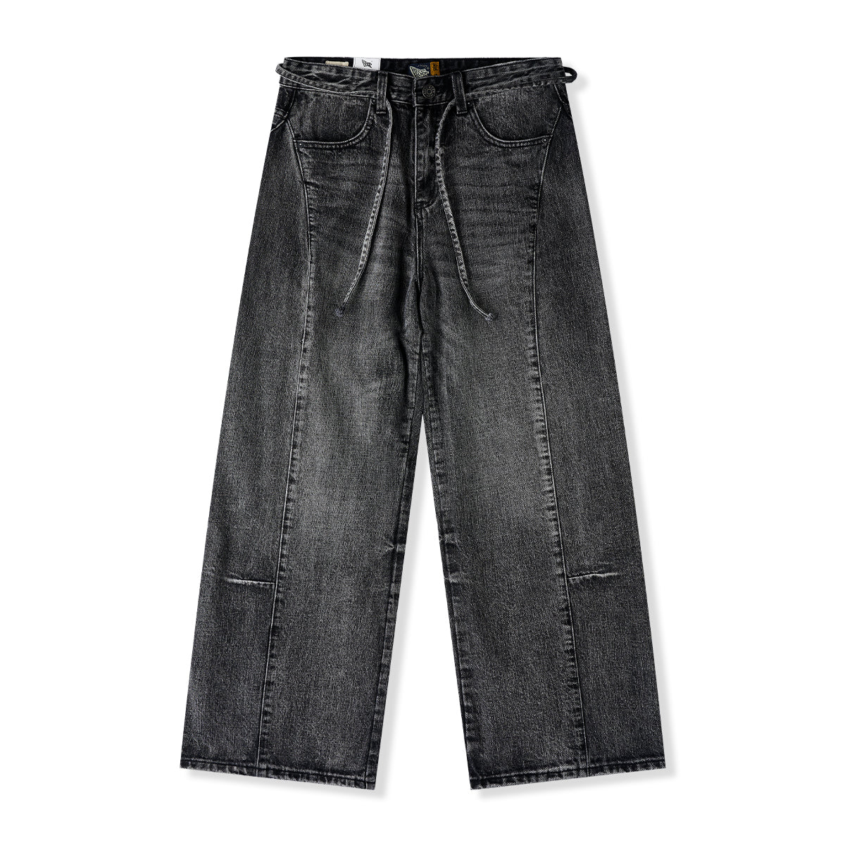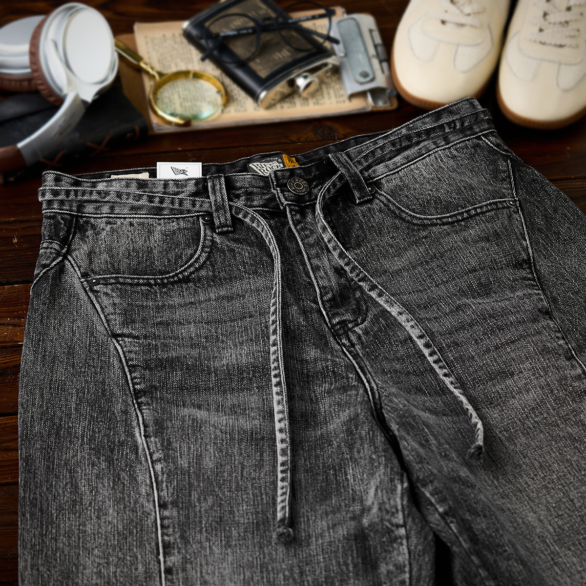 ウエストヒモ付き 立体裁断&ウォッシュド加工デニムパンツ