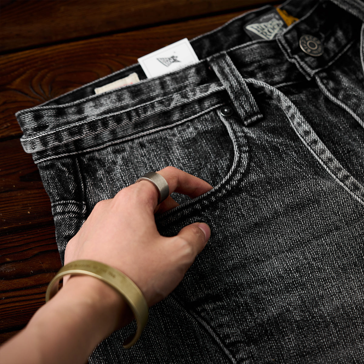 立体裁断を採用することで、脚のラインに自然に沿うフォルムを実現した一本。膝やヒップ周りにほどよいゆとりを持たせつつ、裾にかけてすっきりと整えたシルエットが、ラフでありながら洗練された印象を演出します。生地にはウォッシュド加工を施し、穿き込んだような柔らかな風合いと自然なアタリ感を表現。デニム特有の硬さを抑え、初めて袖を通したその日から身体になじむ快適な穿き心地を叶えました。程よい色落ちがコーディネートに奥行きを加え、シンプルなトップスとも好相性です。さらにウエストにはヒモをプラス。ベルトなしでもフィット感を調整でき、イージーパンツのようなリラックス感とデニムの存在感を両立。
