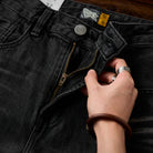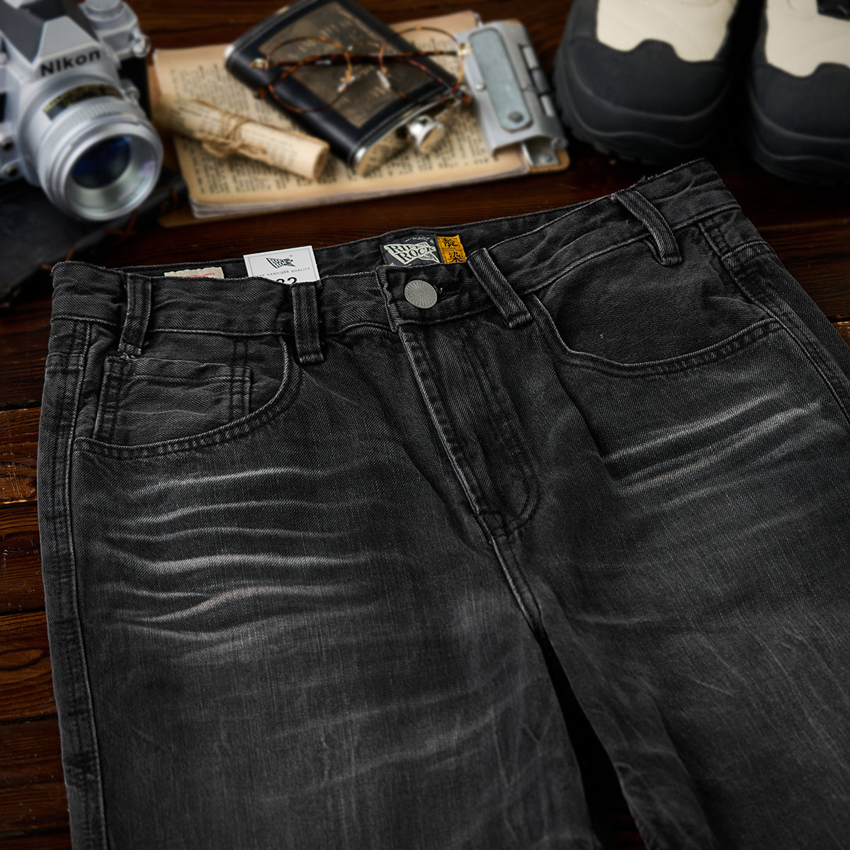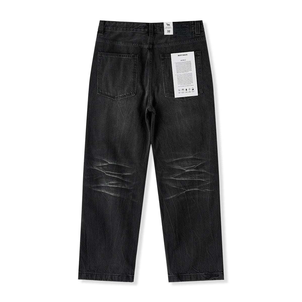 ウォッシュ&ヒゲ加工 ストレートブラックデニムパンツ