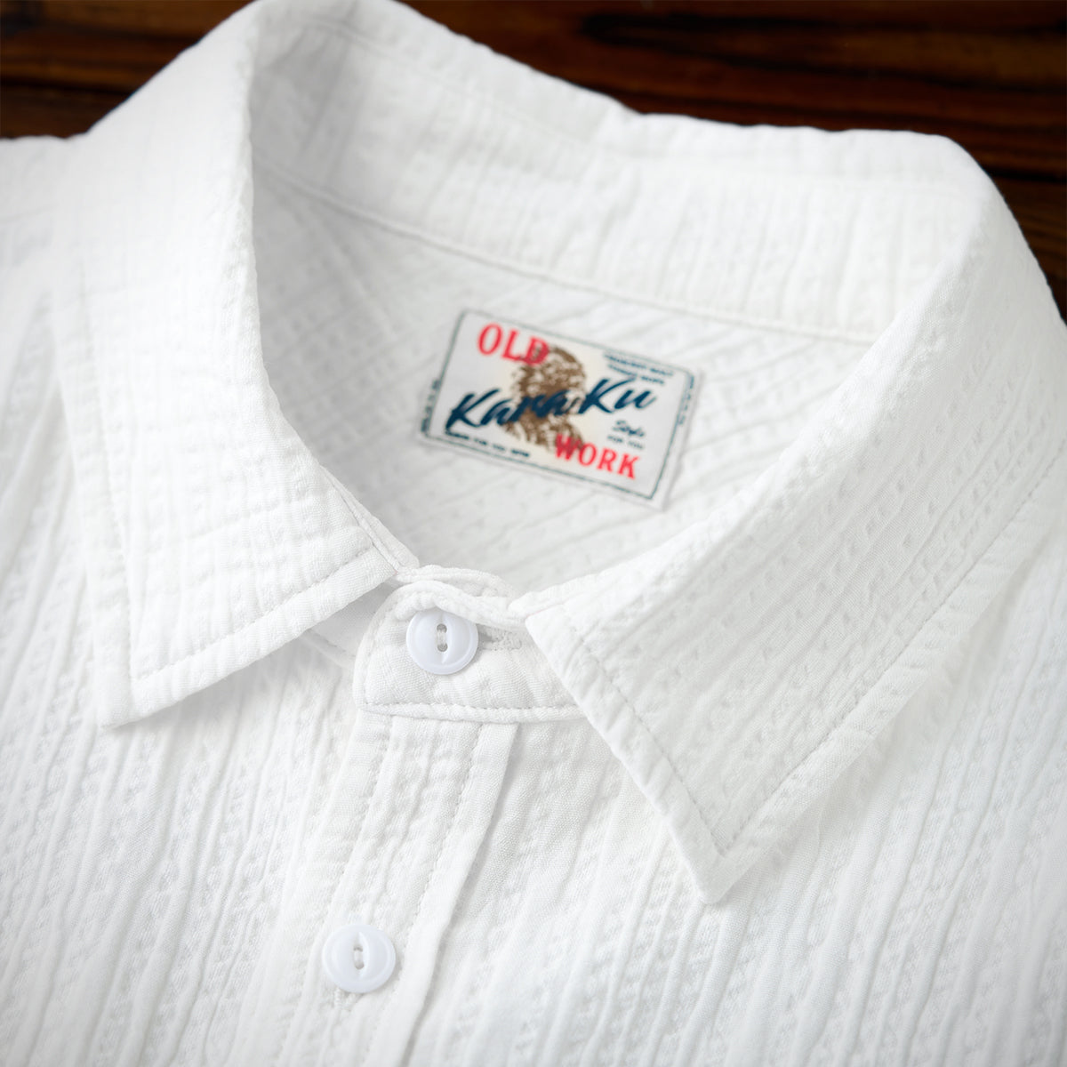さりげない個性を纏う、大人のためのテクスチャー半袖シャツ。生地表面に凹凸感のある織りを施し、無地でありながらも奥行きのある表情に仕上げました。胸元には「Karaku」ロゴのワンポイント刺繍を配置。主張しすぎないサイズ感で、ブランドらしいアイデンティティをさりげなく演出します。裾にはアクセントとなる赤ヒモをプラス。軽く絞ることでシルエットの調整が可能で、リラックスした着こなしからメリハリのあるスタイルまで自在にアレンジできます。程よくゆとりのあるシルエットで、単体での着用はもちろん、レイヤードスタイルにも活躍。日常使いから週末のリラックスシーンまで幅広く対応する、着回し力の高い一着です。素材の質感、細部へのこだわり、そして遊び心。シンプルだからこそ違いが際立つ、Karakuらしい半袖シャツに仕上がっています。