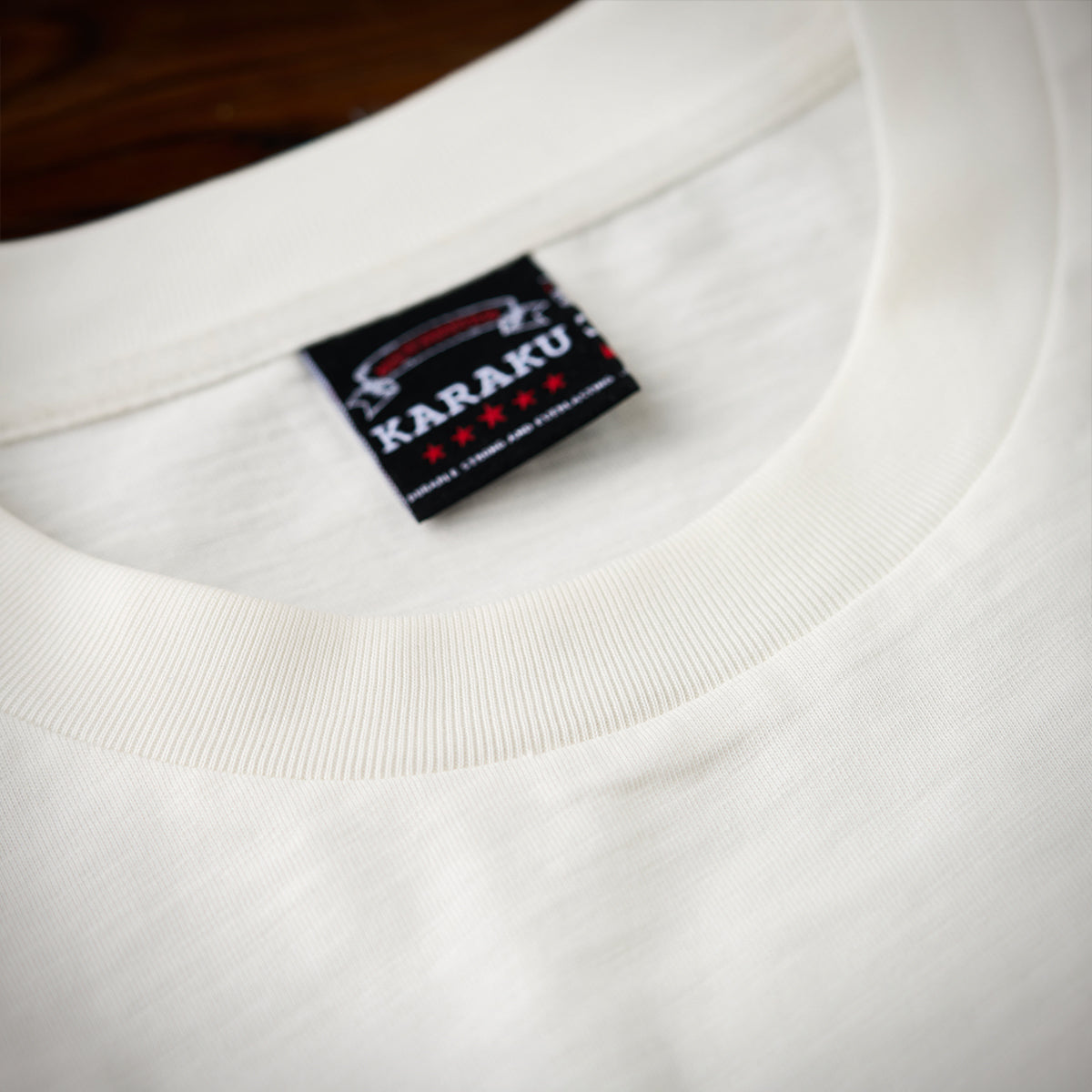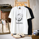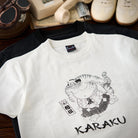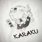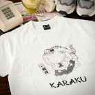 白黒のシンプルなプリントとカラー版の2種類があり、それぞれ異なる雰囲気を楽しめる。 下部には「KARAKU」とブランド名らしきロゴが配置され、全体のバランスが良い。