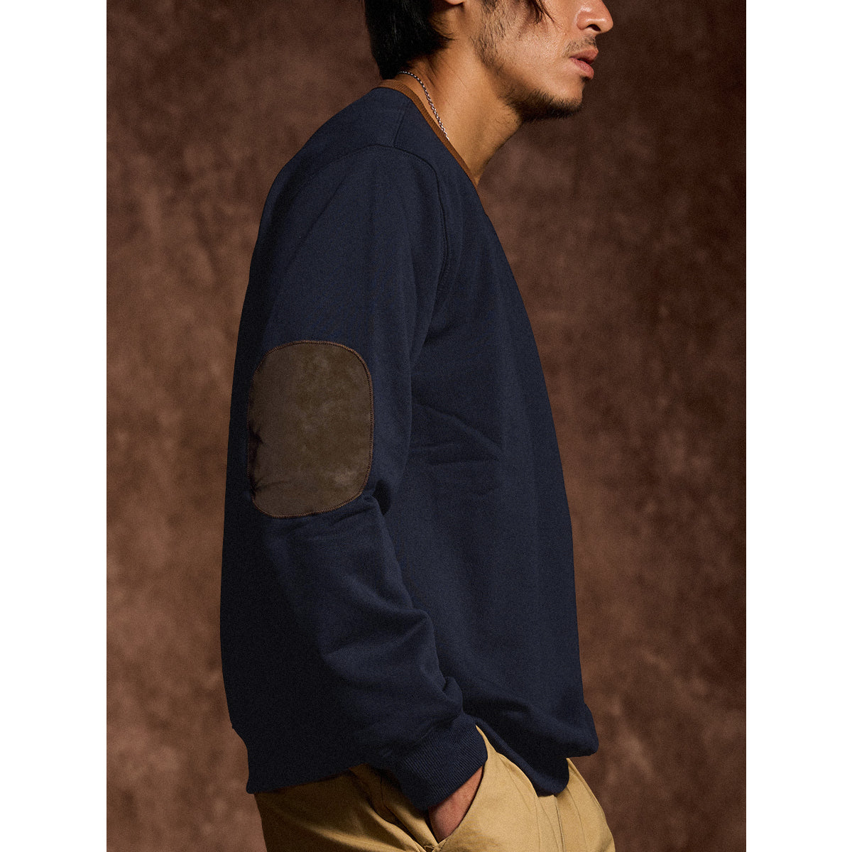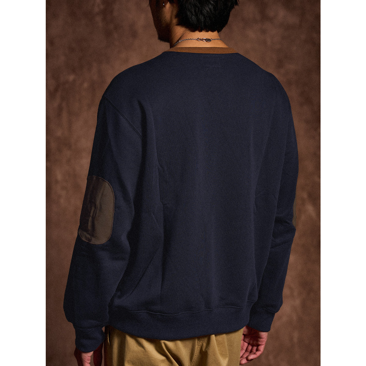 肘スエードパッチ 「KaraKu」刺繡入り裏起毛コットンスウェット