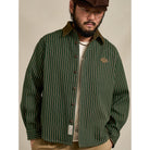 「STAY TRUE」刺繍ワッペン コーデュロイ切替裏フリースストライプシャツ