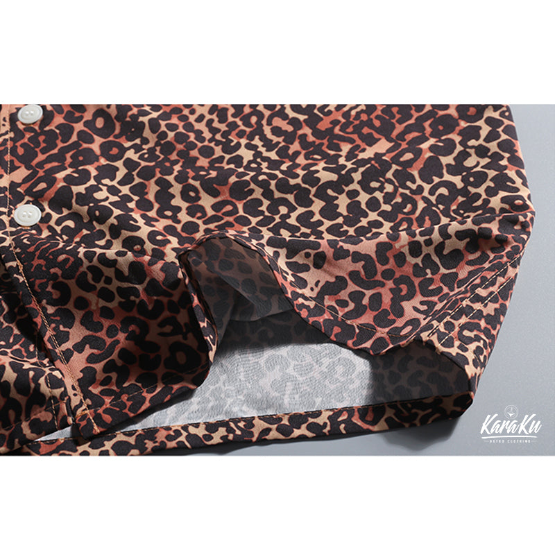 本アイテムは高い人気を誇る、ヴィンテージでも大変貴重であるヒョウ柄を全面にプリントしたのが特徴。生地にはポリエステル100%の素材を使用、シルクの様な光沢があり見た目や肌触りが良く、テロンとした落ち感でドレープの様な感じにする。滑らかで、肌触りの良い生地感が爽快な着心地を実現、サラッと羽織っていただけます。デザインの面では、襟元はオープンカラー仕様で、首周りの締め付けがなく快適に着用できます。身幅にゆとりを持たせてデザインされたトレンドライクなゆったりとしたシルエットを採用。アメカジスタイルにはもちろん、様々なスタイルの主役を張ることのできる1枚です。