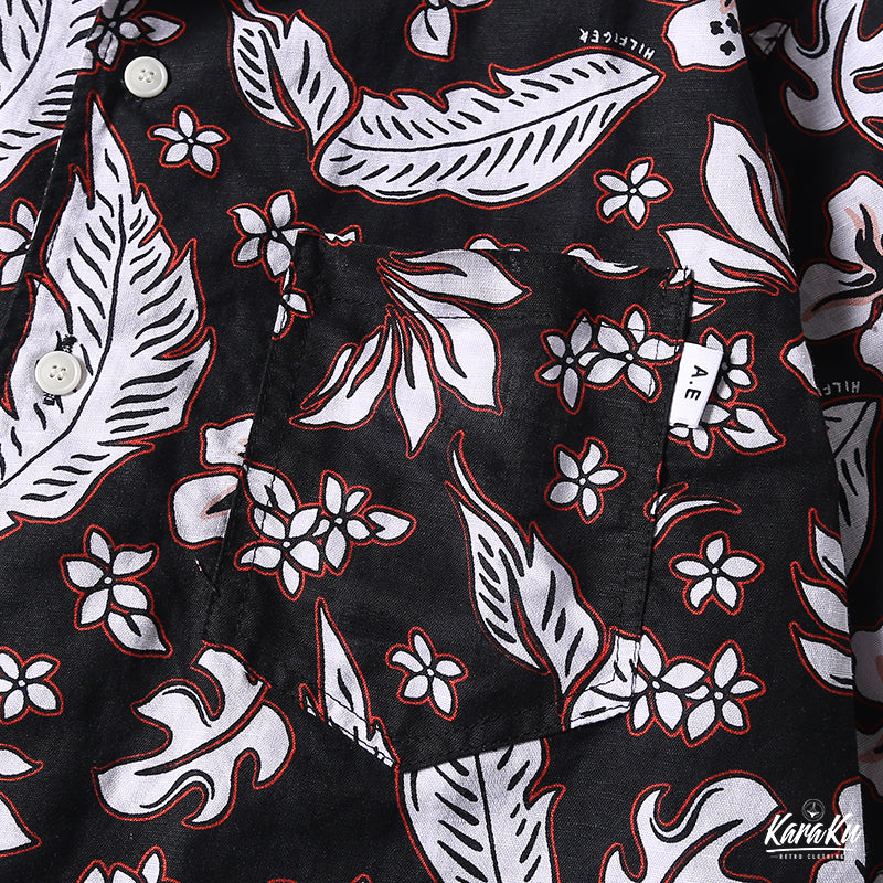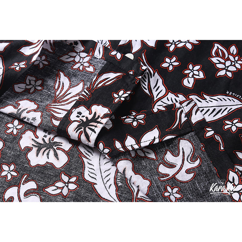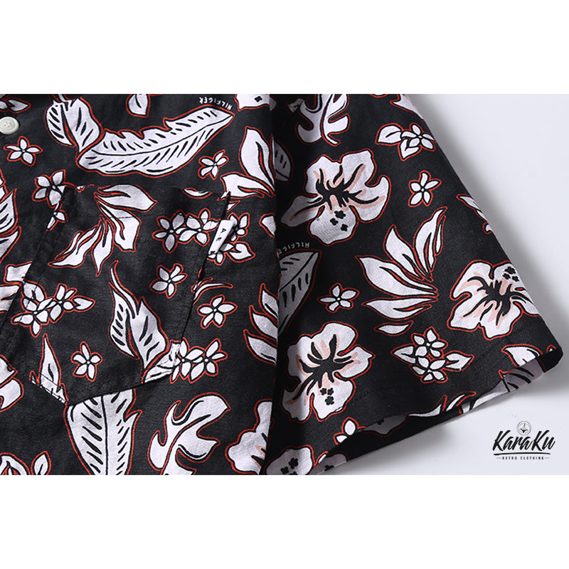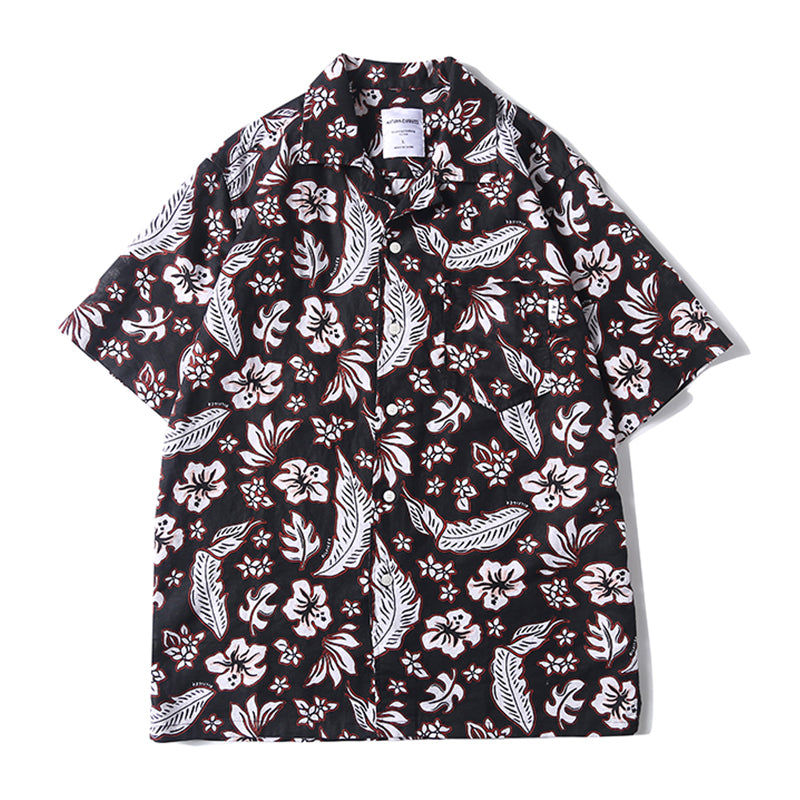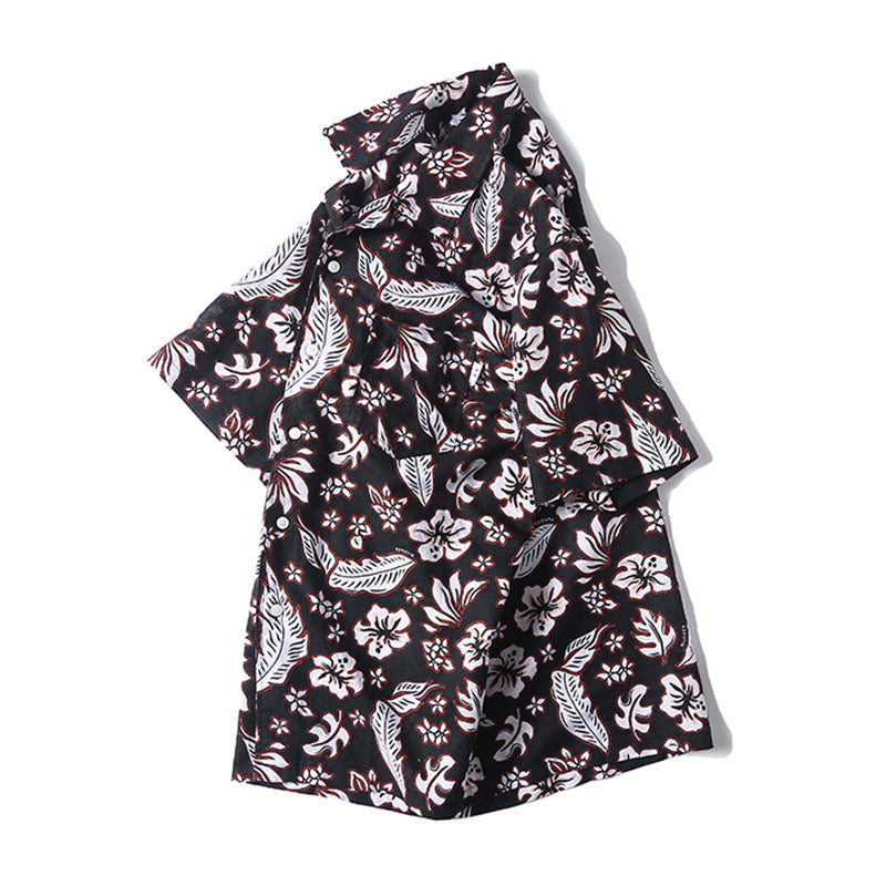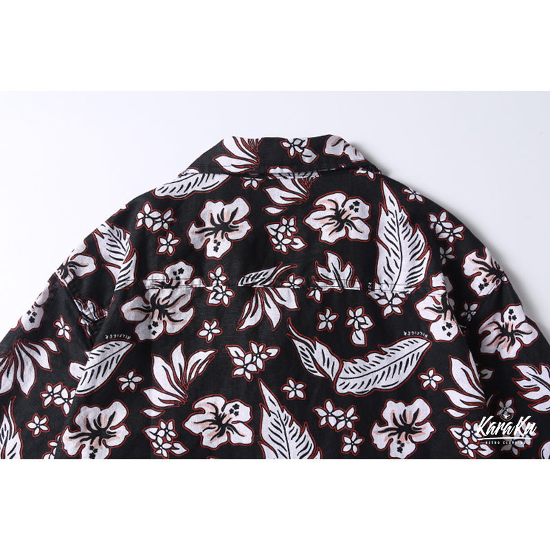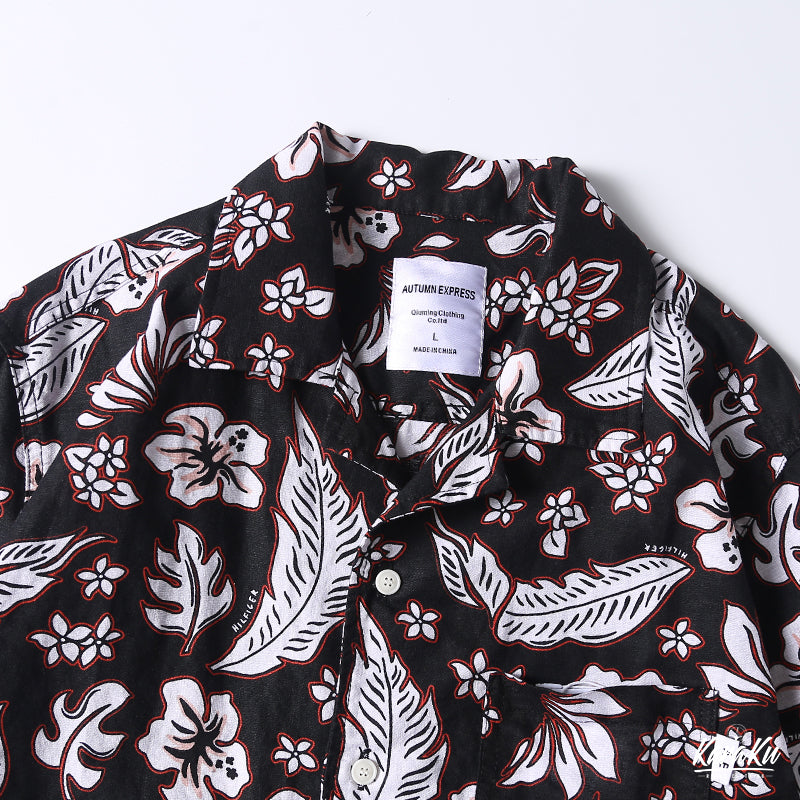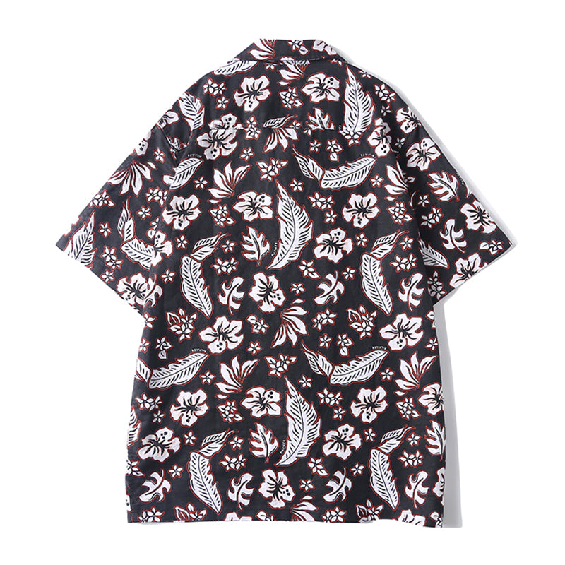 トロピカルフラワー総柄 綿麻キューバシャツ