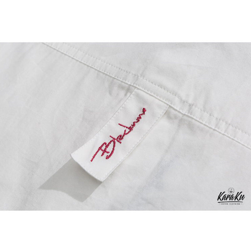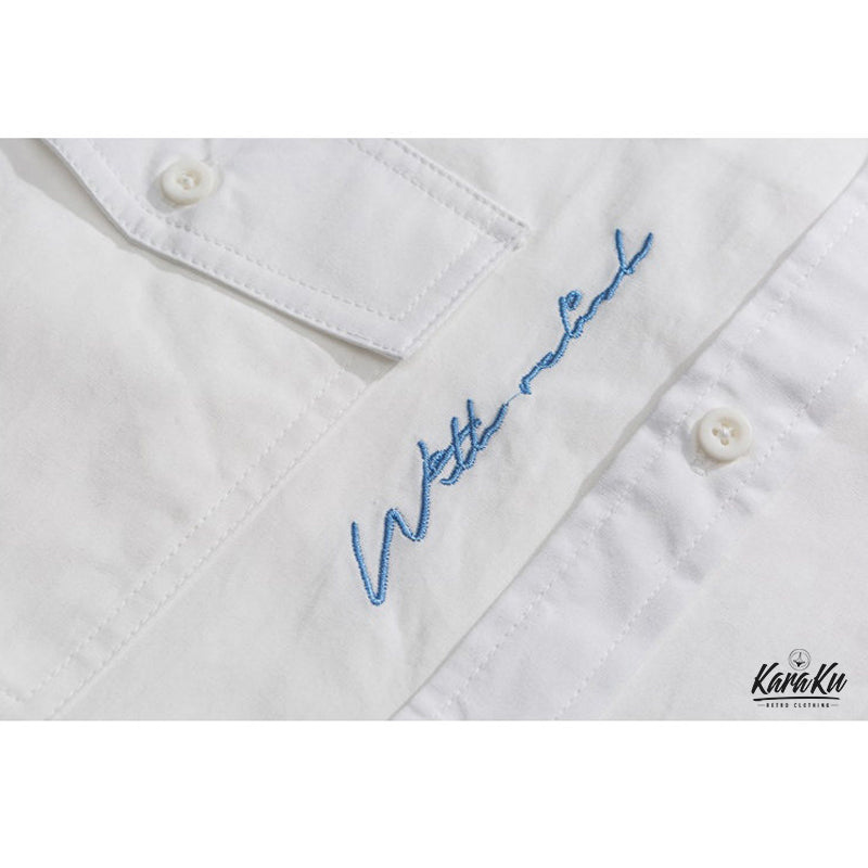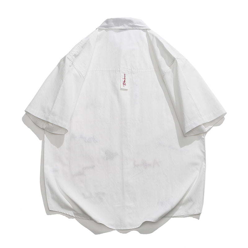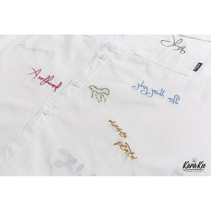落書き風レタリング刺繍入り半袖ワークシャツ