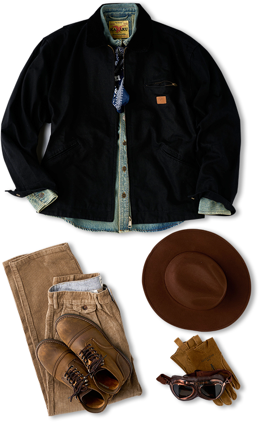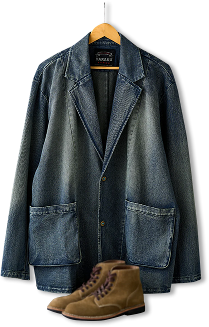柔らかく味わい深いウォッシュドデニムが、街の風景に自然に溶け込み、ライディング中も快適な着心地を提供。テーラードジャケットのきちんと感とデニムのカジュアルさが絶妙に混ざり合い、下町のカフェでのひとときにもぴったりなスタイルを演出する。