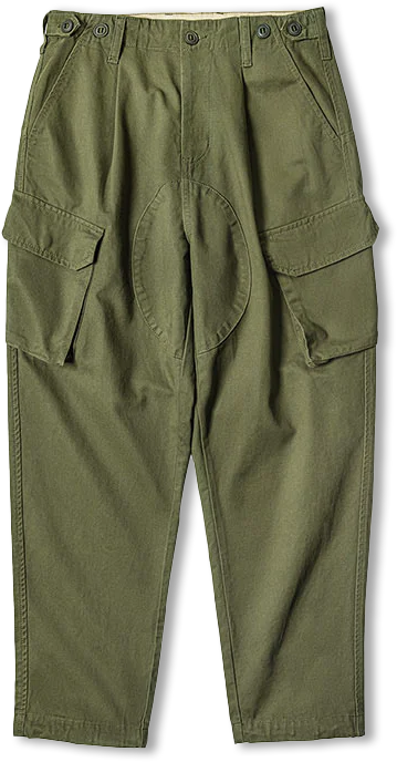 耐久性の高いミリタリーパンツは、岩場や林道などの悪路でも安心のタフさを発揮。カーゴポケットには地図やツールを収納でき、ライディング中も手元に必要なものを確保できる。