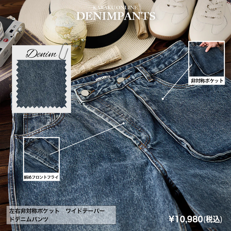 ヒゲ加工 コインポケット付きストレートデニムパンツ