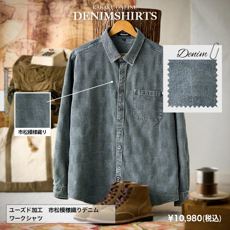 モンキーワッシュ加工 ダイヤジャカード織りデニムシャツ