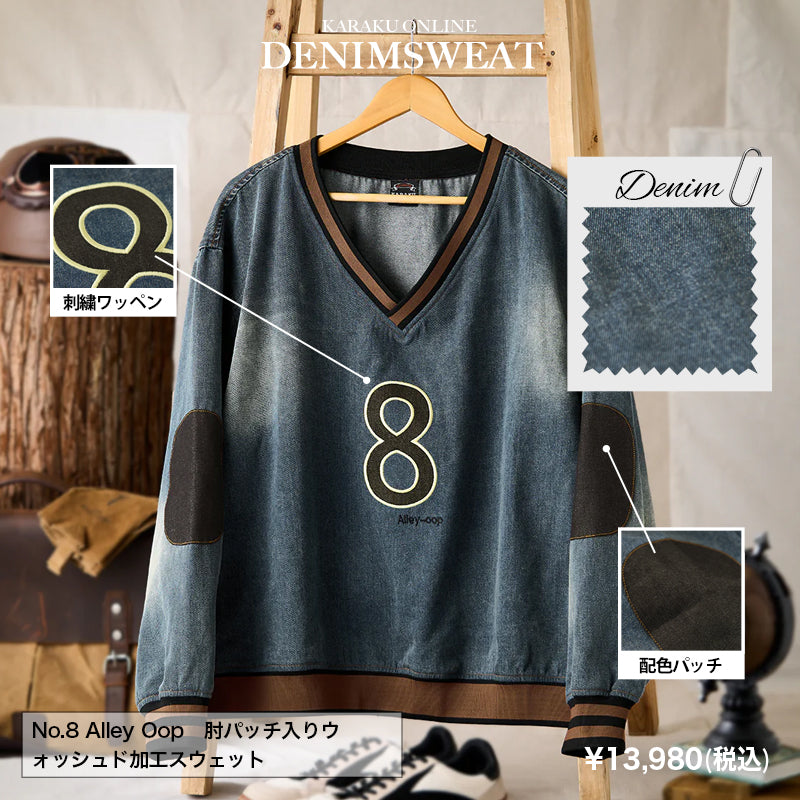 No.8 Alley Oop 肘パッチ入りウォッシュド加工スウェット