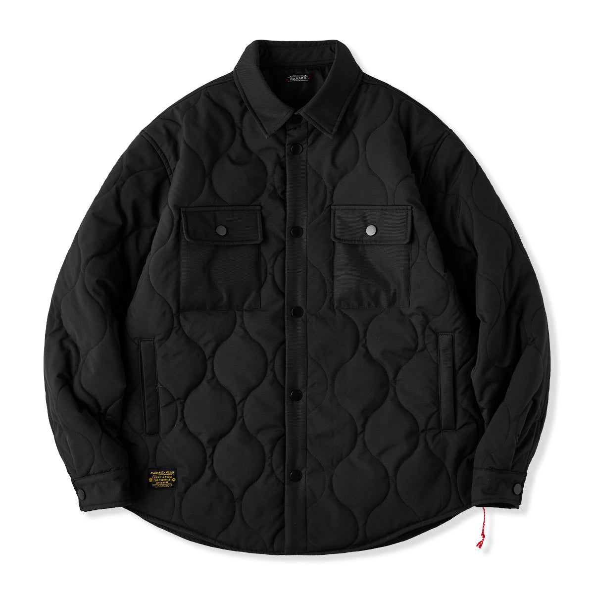 程よい光沢感と高級感のある風合いが持ち味のポリエステルを採用しており、武骨さと耐久性があり、実用的な機能美が魅力的です。中綿が入っているため、保温性が高く、寒い季節でも暖かく着用できます。