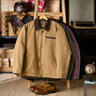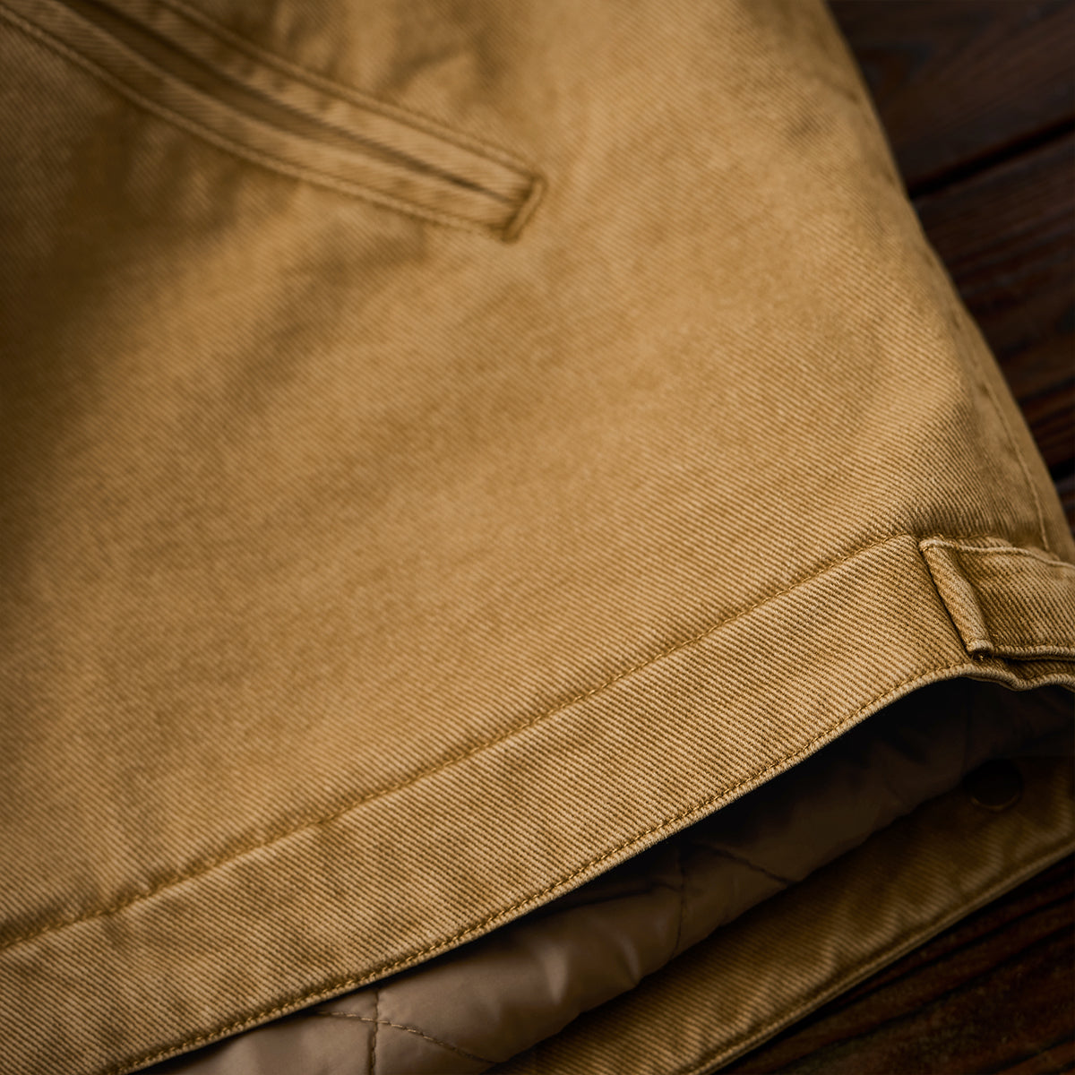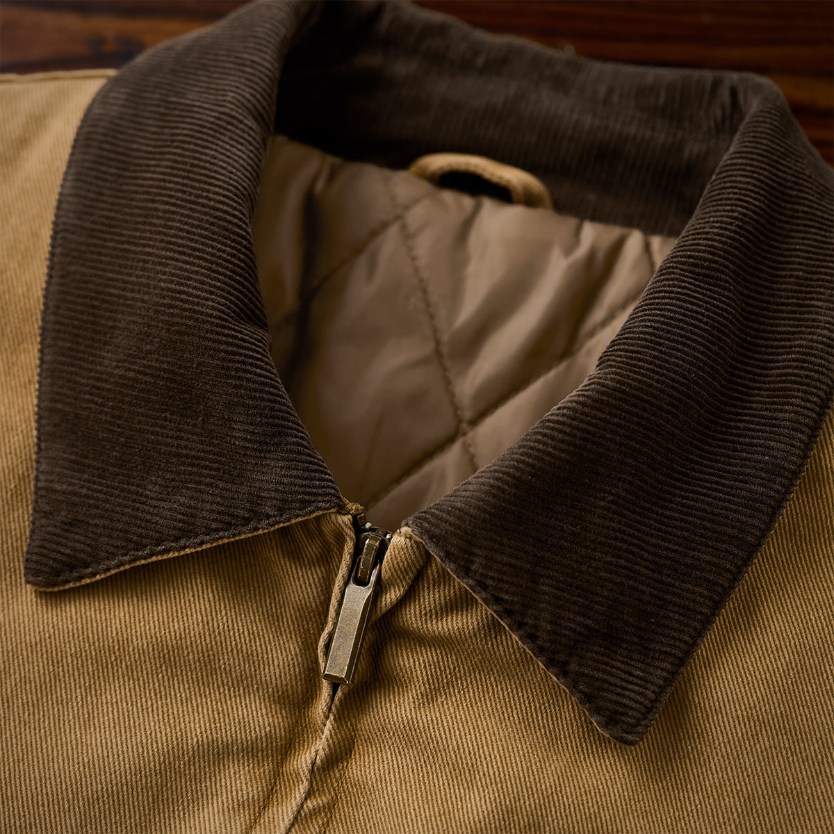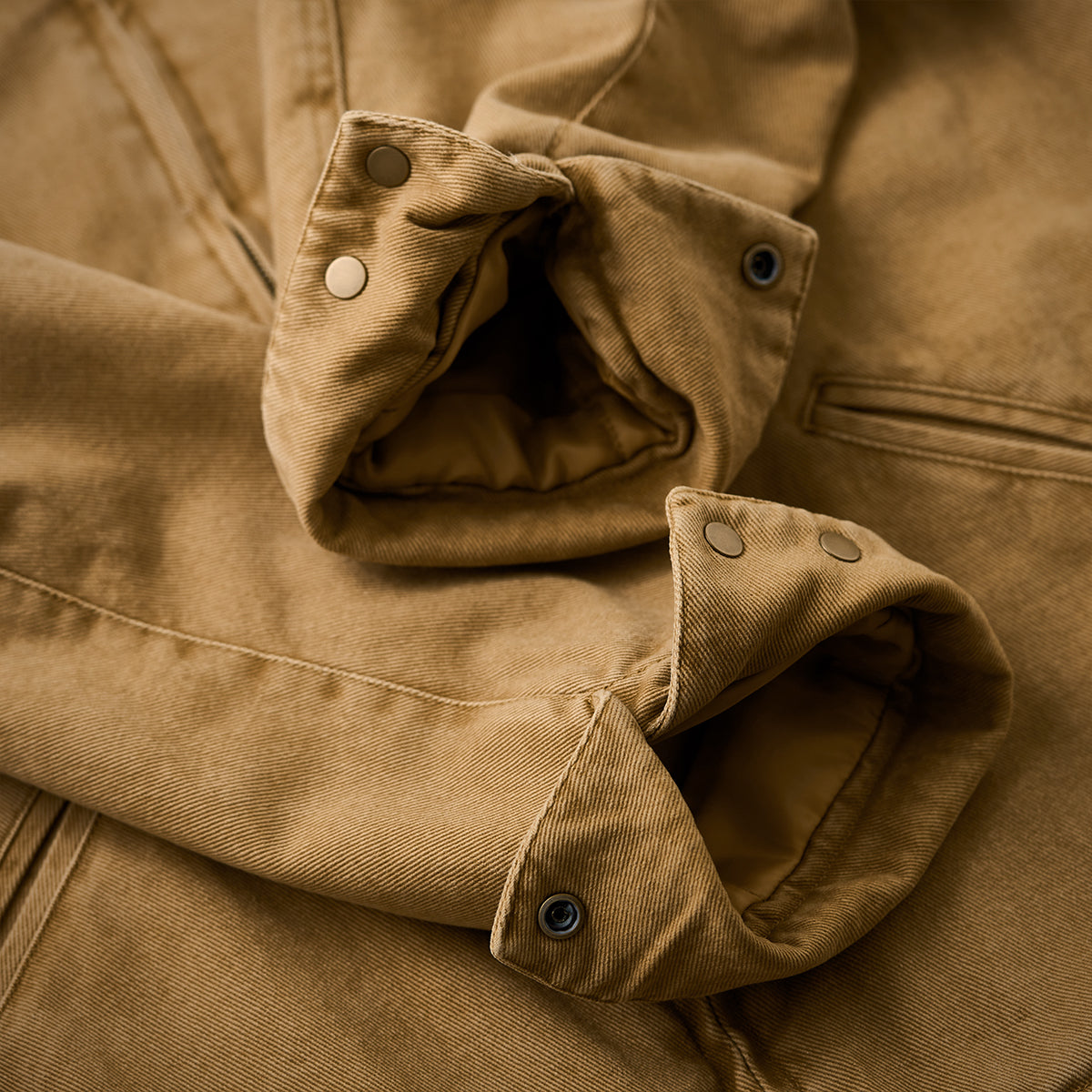 クラシックなワークジャケットをベースに、現代的な着心地へとアップデートした中綿デトロイトジャケット。特徴的なコーデュロイ襟が程よいアクセントとなり、無骨さの中に上品さをプラスします。裏地にはダイヤモンドキルト仕様の中綿ライニングを採用。軽量ながらもしっかりとした保温性を備え、冬場のアウターとして頼れる暖かさを提供します。シルエットはすっきりとしつつ、動きやすさにも配慮したバランスの良い設計。シンプルながら存在感のある、冬のワードローブに一枚は持っておきたい万能ワークジャケットです。