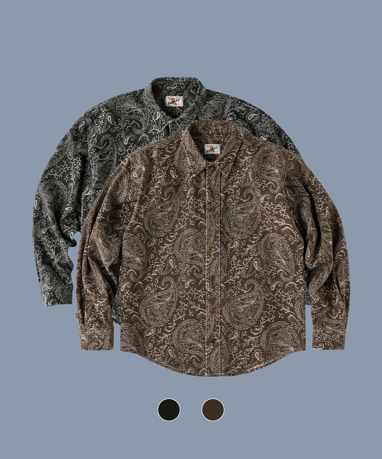 ジャガードペイズリー総柄ウォッシュデニム長袖シャツ
