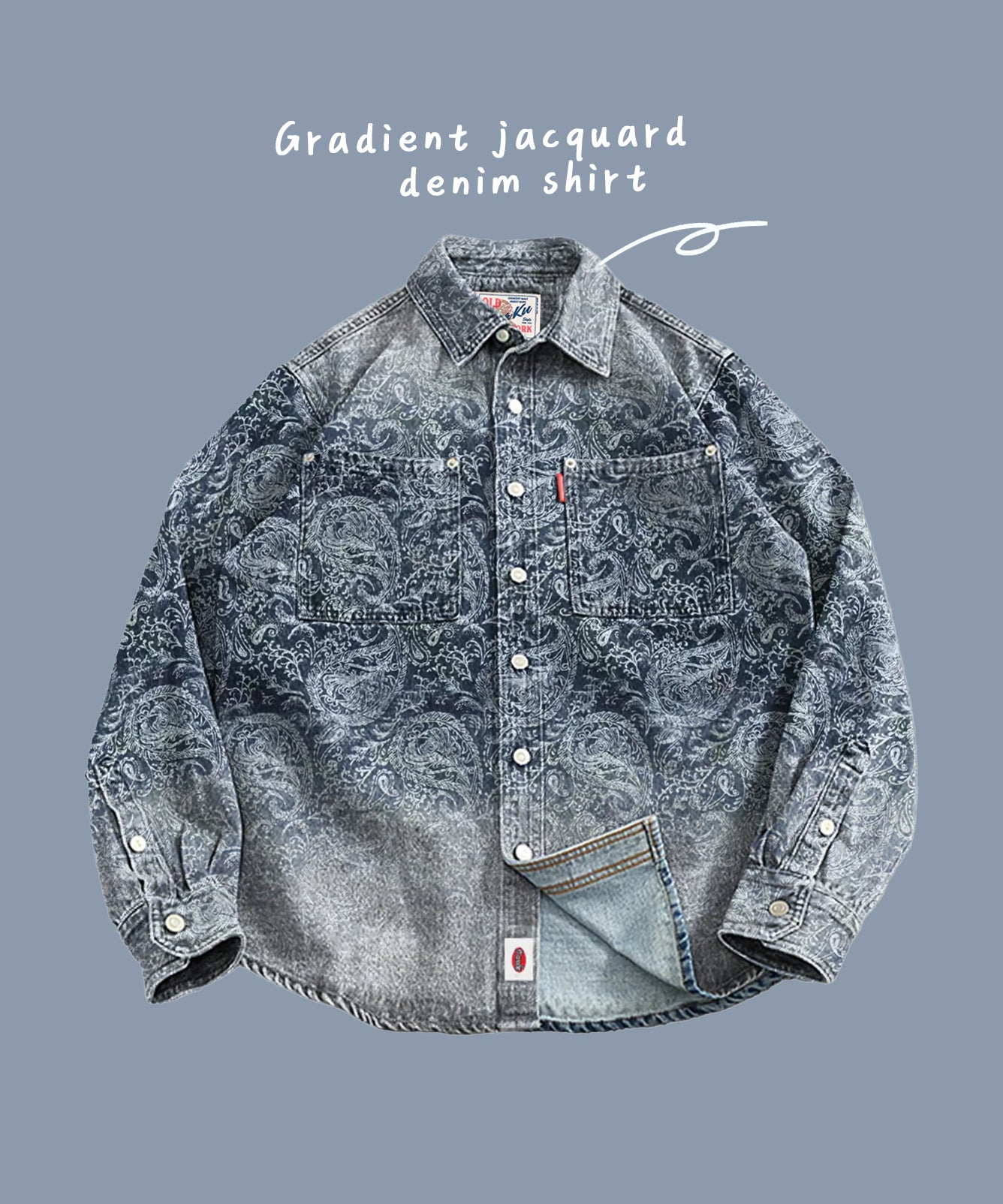 グラデーション ペイズリー柄ジャガード織りデニムワークシャツ