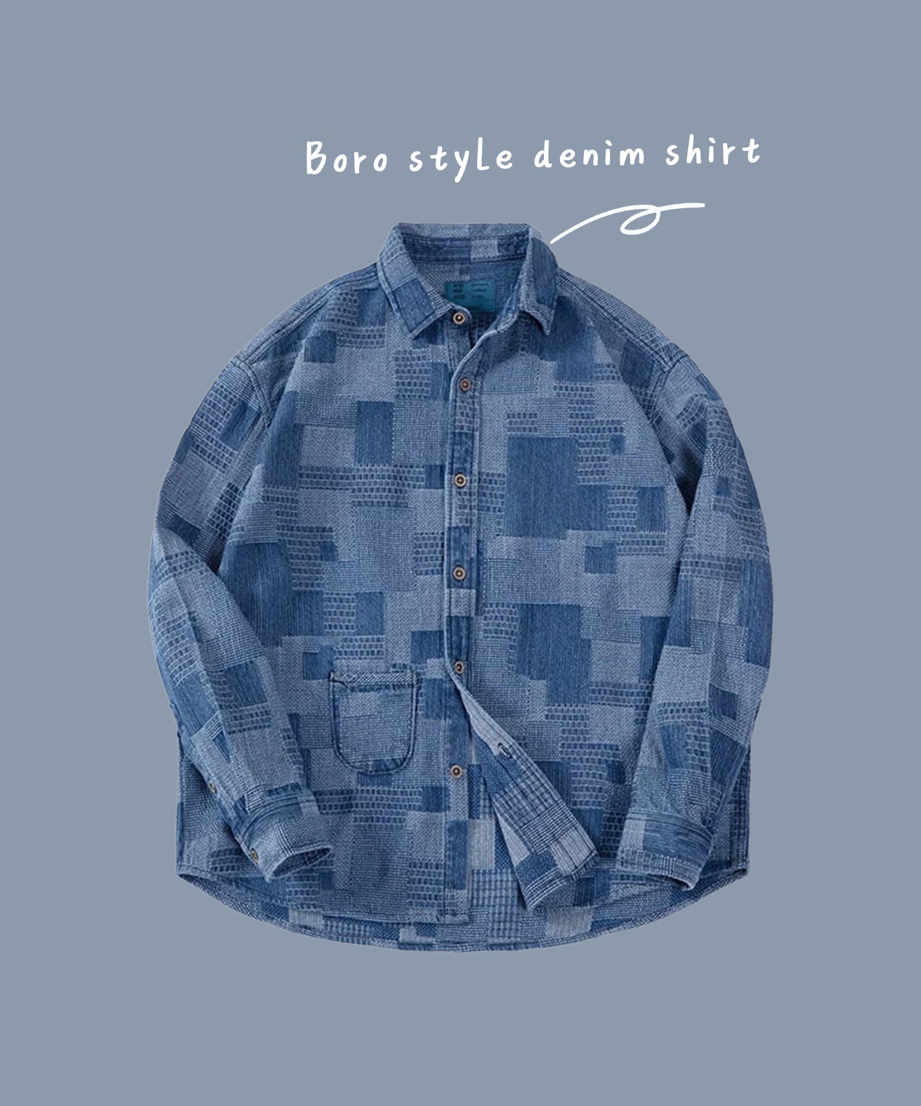 ボロ風ジャガード 先染めデニムワークシャツ