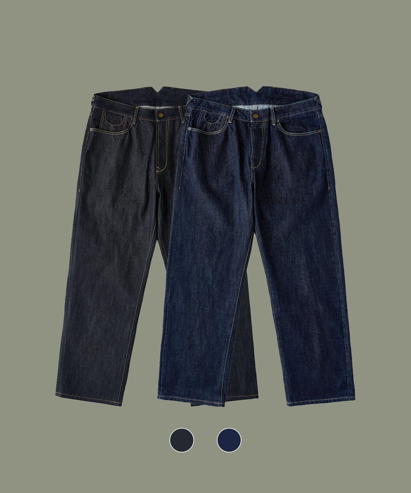 14.75oz 2タイプ選べるシンチバック付きヘビーウェイトデニムパンツ