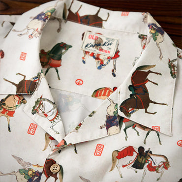 【予約】「武将の馬」総柄 浮世絵風アロハシャツ
