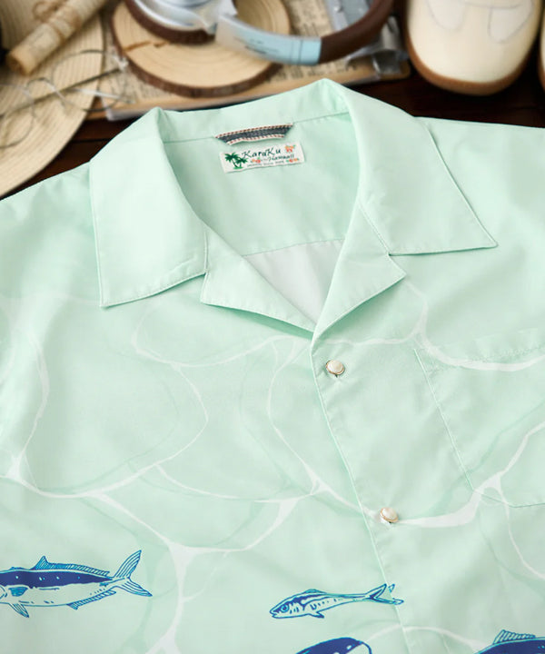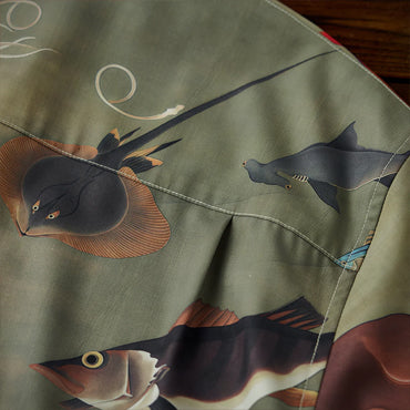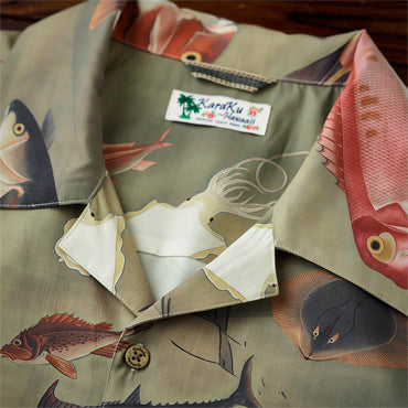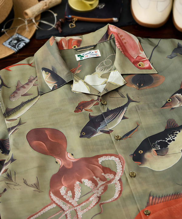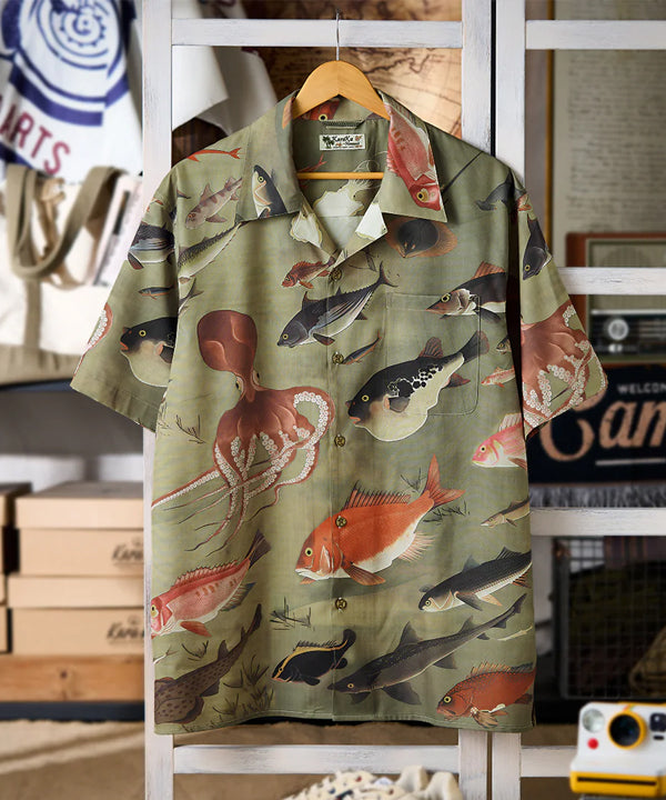 【予約】伊藤若冲「群魚図」プリント入りオープンカラーアロハシャツ