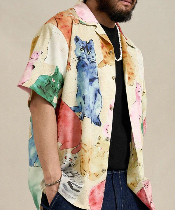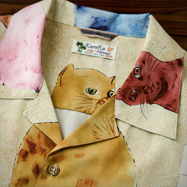 【予約】「カラフルキャット」ポップアート風プリントアロハシャツ