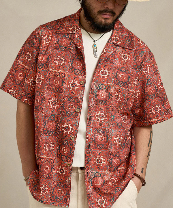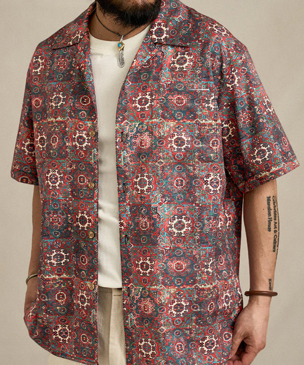 【予約】ペルシャエスニック調パターン総柄アロハシャツ