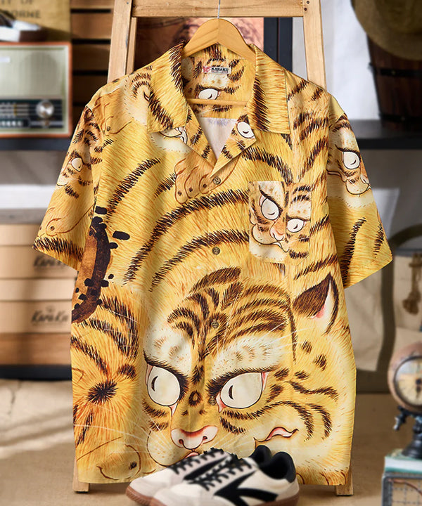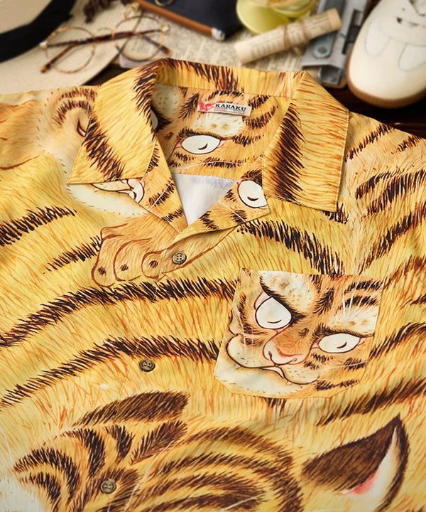 【予約】江戸時代・長崎派「虎図」総柄プリント入りアロハシャツ