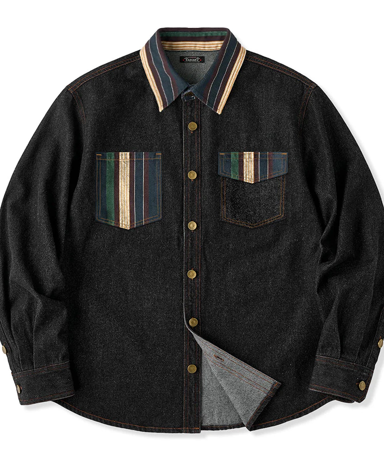 【予約】襟コーデュロイ 裏エスニック柄プリントデニムワークシャツ