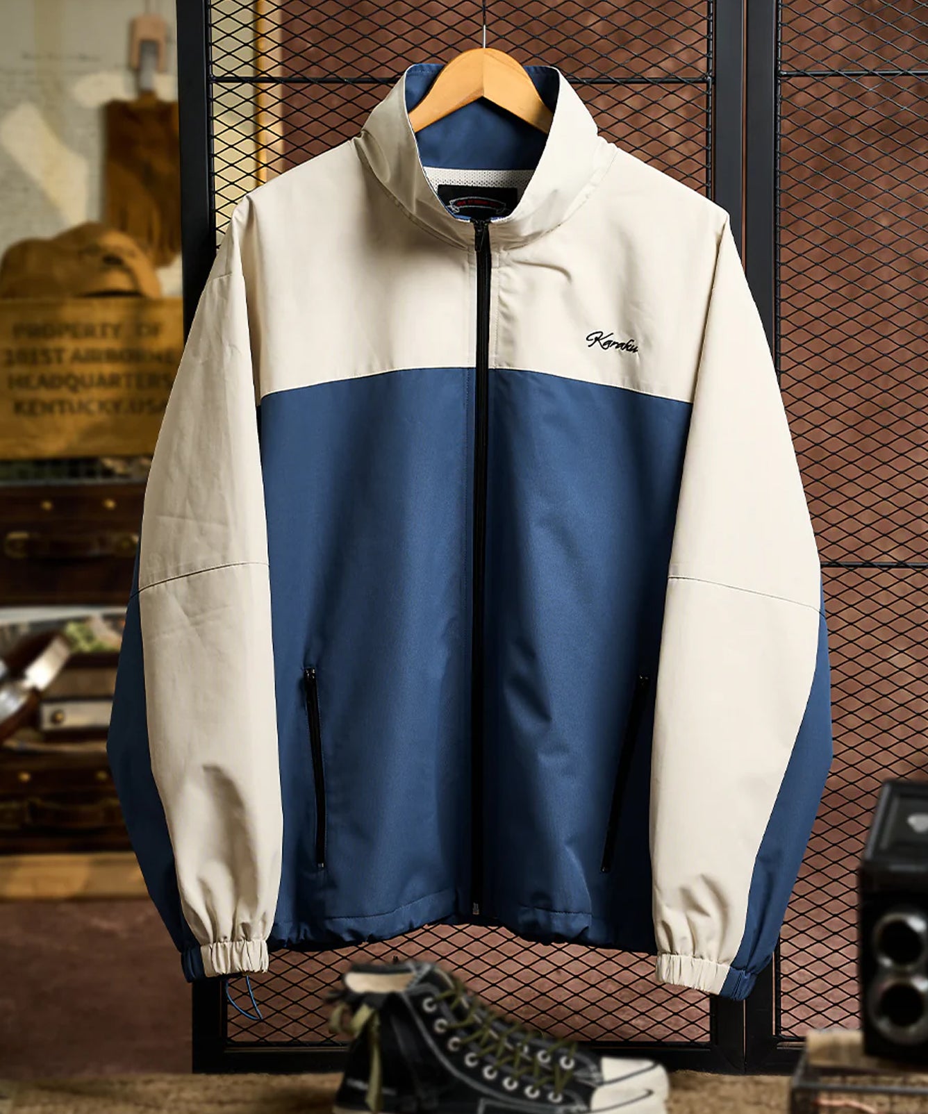 【予約】「KaraKu」刺繡ロゴ 裏メッシュ配色切替スタンドカラージャケット