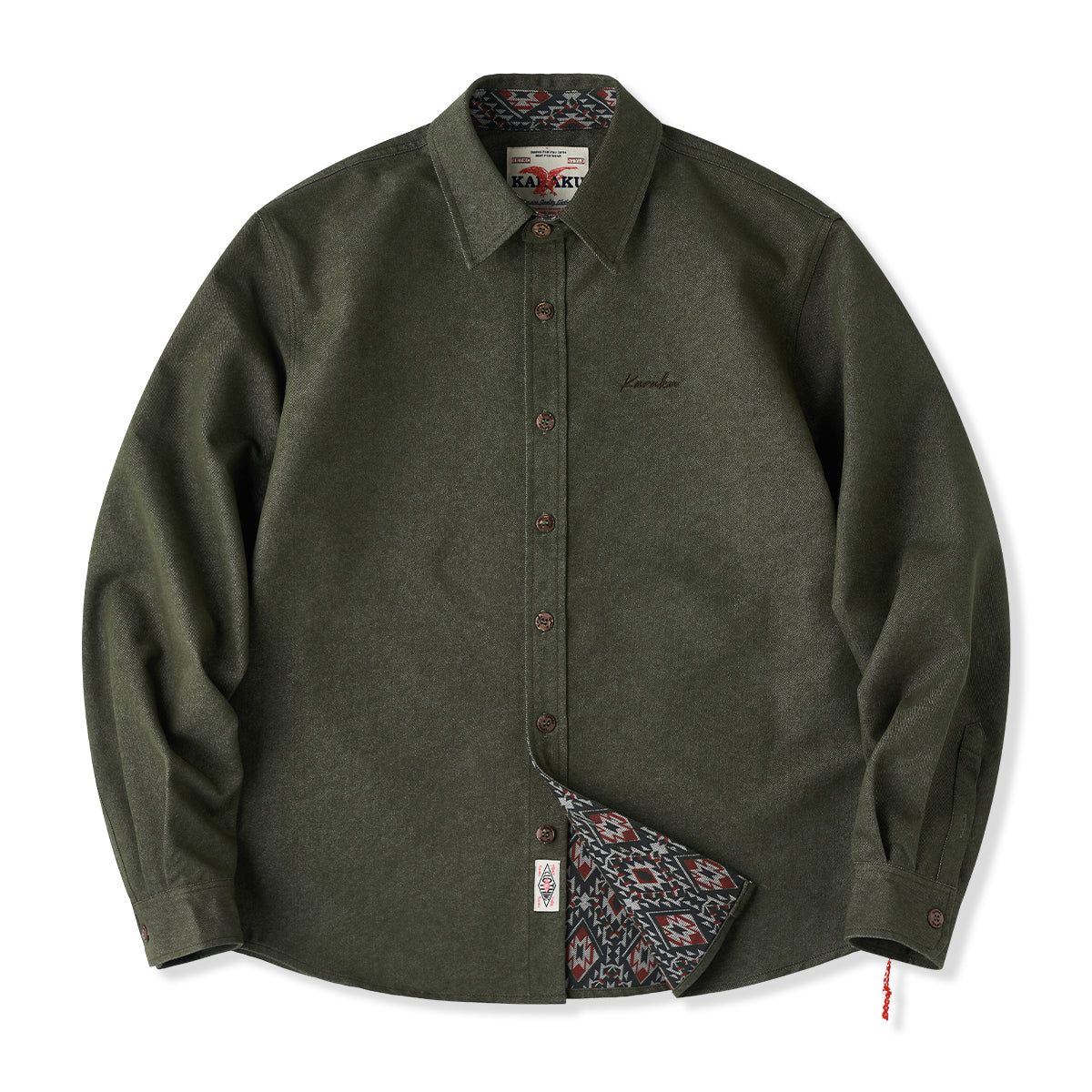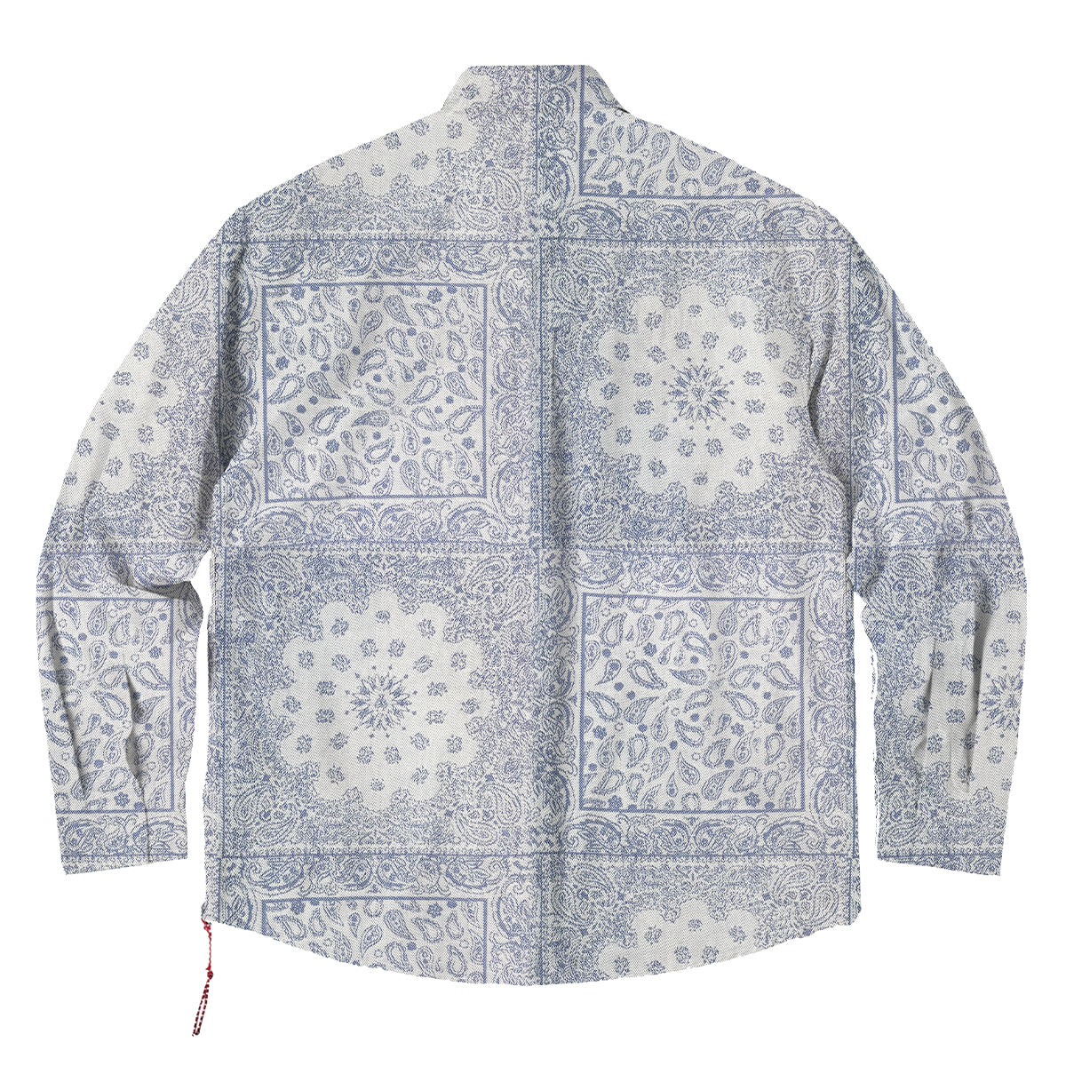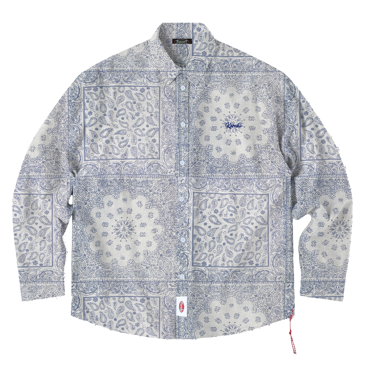 【予約】「Karaku」刺繍入り 赤ヒモ付きペイズリーバンダナ柄長袖シャツ