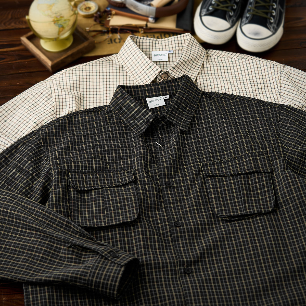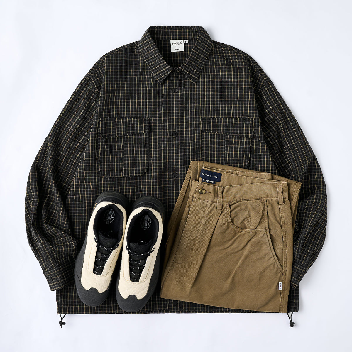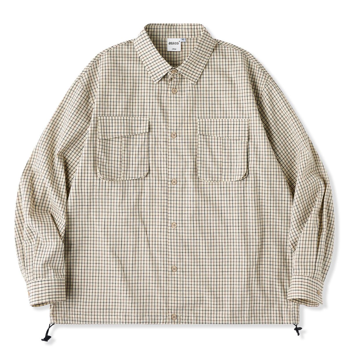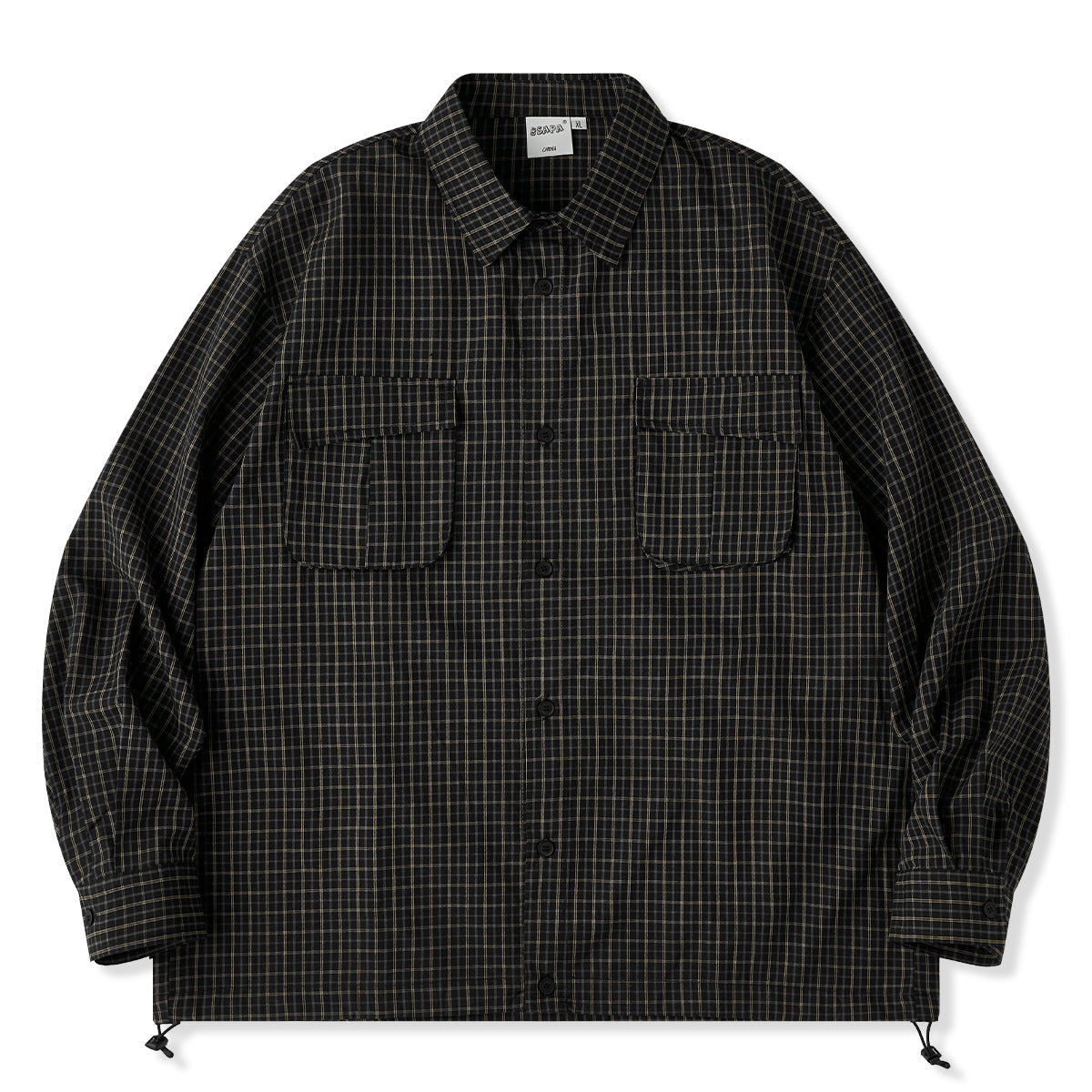 2色展開 裾ドローコード付きチェック柄ワークシャツ